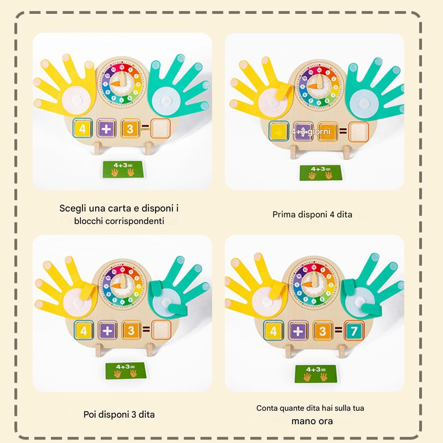 Strumento Cognitivo: Le carte matematiche progressive migliorano le capacità dalle basi alle operazioni complesse, aiutando i bambini a raggiungere fluidità matematica graduale con sviluppo cognitivo adeguato all'età Educazione Interattiva: Facilita la partecipazione genitore-figlio con gioco matematico interattivo, adattabile ad ambienti domestici e scolastici, garantendo portabilità e archiviazione organizzata per un'esperienza di apprendimento senza interruzioni Sicurezza Garantita: Texture liscia senza schegge e costruzione robusta proteggono la pelle delicata durante l'interazione giornaliera, garantendo esperienze di gioco sicure. Gioco Educativo: Utilizza componenti tattili e schede strutturate per incoraggiare l'esplorazione attiva, migliorare la cognizione matematica e sviluppare competenze nella gestione del e nel calcolo di base Strumento Apprendimento Interattivo: L'apprendimento intuitivo è favorito da carte scenografiche ed elementi per contare, trasformando complesse operazioni numeriche in gioco educativo pratico e piacevole