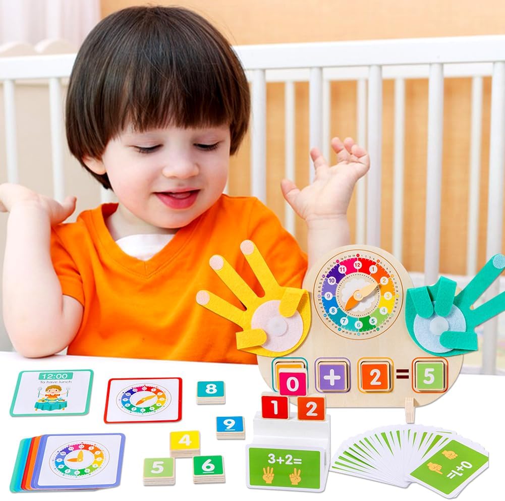 【Giocattolo per contare con le dita】: questo giocattolo matematico per contare con le dita include una tavola di conteggio con lancette e scanalature, 2 morbidi palmi in feltro, 12 carte numeriche in legno, 18 carte per imparare l'ora e 23 carte con operazioni di addizione e sottrazione. Con l'aiuto di questo giocattolo per contare con le dita, i bambini possono risolvere problemi matematici in modo intuitivo e divertente! Questo gioco interattivo non solo stimola la curiosità dei bambini, ma migliora anche le loro capacità matematiche in modo divertente. 【Materiali di alta qualità】:Diamo grande importanza alla sicurezza e al divertimento dei bambini. Il giocattolo per contare con le dita è realizzato con materiali in legno di alta qualità e tutti i bordi delle parti sono arrotondati per garantire che siano lisci e senza spigoli. Il tabellone e i guanti sono resistenti e possono sopportare l'uso quotidiano dei bambini, garantendo una lunga durata per tutta la famiglia. 【Sviluppo di diverse abilità】: i giocattoli Montessori per l'apprendimento dei numeri hanno lo scopo di promuovere la creatività, lo sviluppo cerebrale, il riconoscimento dei numeri e dei colori, la coordinazione occhio-mano dei bambini e di rafforzare l'interazione tra genitori e figli. 【La scelta ideale per l'istruzione】: questo giocattolo matematico per contare con le dita ha molti usi ed è adatto a vari tipi di istruzione familiare, corsi scolastici, compiti a casa, giochi all'aperto per bambini, attività genitore-figlio o altre attività educative. È molto utile per lo sviluppo intellettuale dei bambini. 【Regalo perfetto】: il nostro giocattolo matematico per contare con le dita è progettato appositamente per bambini dai 3 anni in su, è di dimensioni adatte alle loro manine ed è facile da usare. Che si tratti del compleanno di un bambino, delle festività natalizie o di una sorpresa quotidiana, è un regalo perfetto che unisce educazione e divertimento. I bambini possono imparare giocando e crescere divertendosi, acquisendo conoscenze e felicità.