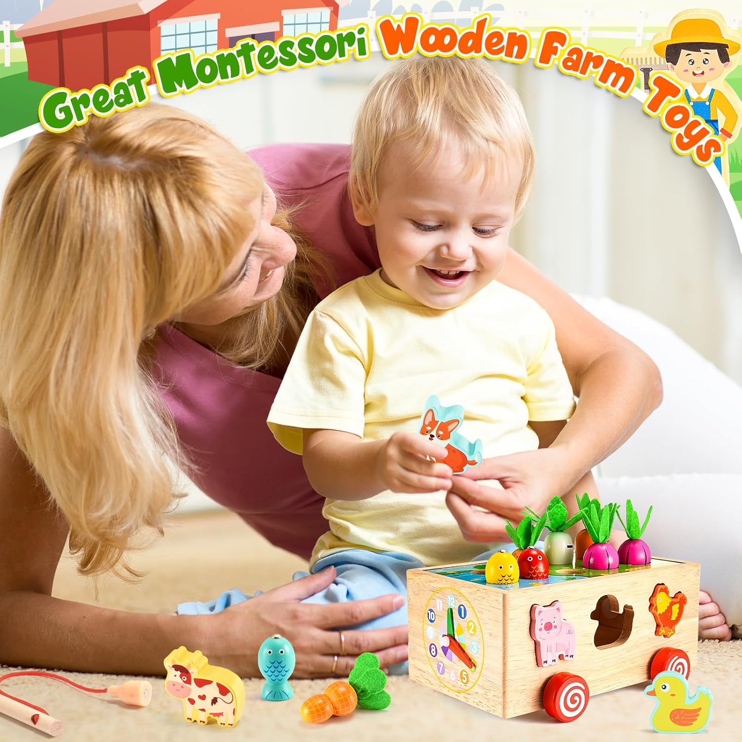 【Giocattolo STEM educativo per bambini 8 in 1】 Il simpatico giocattolo della fattoria in legno può giocare a 8 giochi: pesca, tirare il ravanello, orologio didattico, smistamento delle forme, carrello, ingranaggi rotanti, riconoscimento di animali di frutta e verdura e stoccaggio. Un fantastico giocattolo prescolare per ragazze e ragazzi da 1 a 5 anni. Una varietà di modi di giocare può portare più divertimento a tuo figlio. 【Giocattolo da fattoria di alta qualità】 Realizzato in legno con 6 animali, 6 verdure, 3 pesci, 1 contadino, 2 attrezzi (canna da pesca/piccole pinzette) e un carrello a 5 lati. I nostri prodotti sono realizzati in legno naturale al 100% e sono atossici, privi di BPA e resistenti ai colori. Entrambi soddisfano le esigenze di apprendimento giocoso dei bambini e le esigenze di sicurezza e qualità dei genitori. 【Abilità motorie fini】 I giocattoli in legno Montessori sono giocattoli educativi per bambini di 1-5 anni: i giochi di ordinamento delle forme possono migliorare le capacità motorie dei bambini di 1-5 anni; I giochi di pesca e di pesca delle carote possono allenare la coordinazione occhio-mano; i blocchi di motivi colorati possono migliorare il riconoscimento del colore e della forma; A loro volta, il trasporto e lo smistamento sviluppano forti capacità motorie e creatività. [Interazione genitore-figlio] Questo giocattolo Montessori offre una varietà di opportunità divertenti per genitori e figli per promuovere un senso di vicinanza tra loro. Allo stesso tempo, può migliorare le capacità sociali ed espressive dei bambini. Dopo il gioco, i genitori possono guidare i loro bambini a mettere insieme i giocattoli nel carrello per mantenere la stanza in ordine mentre sviluppano le loro capacità di conservazione. 【Regalo creativo e bellissimo】 Il design colorato del giocattolo Montessori viene fornito in una bellissima scatola e può essere regalato direttamente come regalo per ragazzi e ragazze di età compresa tra 1 2 3 4 5 anni, regali per la festa dei bambini, regali di compleanno, regali di Natale, riempitivi per calze, riempitivi per cestini pasquali, nuovi regali per bambini! Dai, giochiamo con la carota.