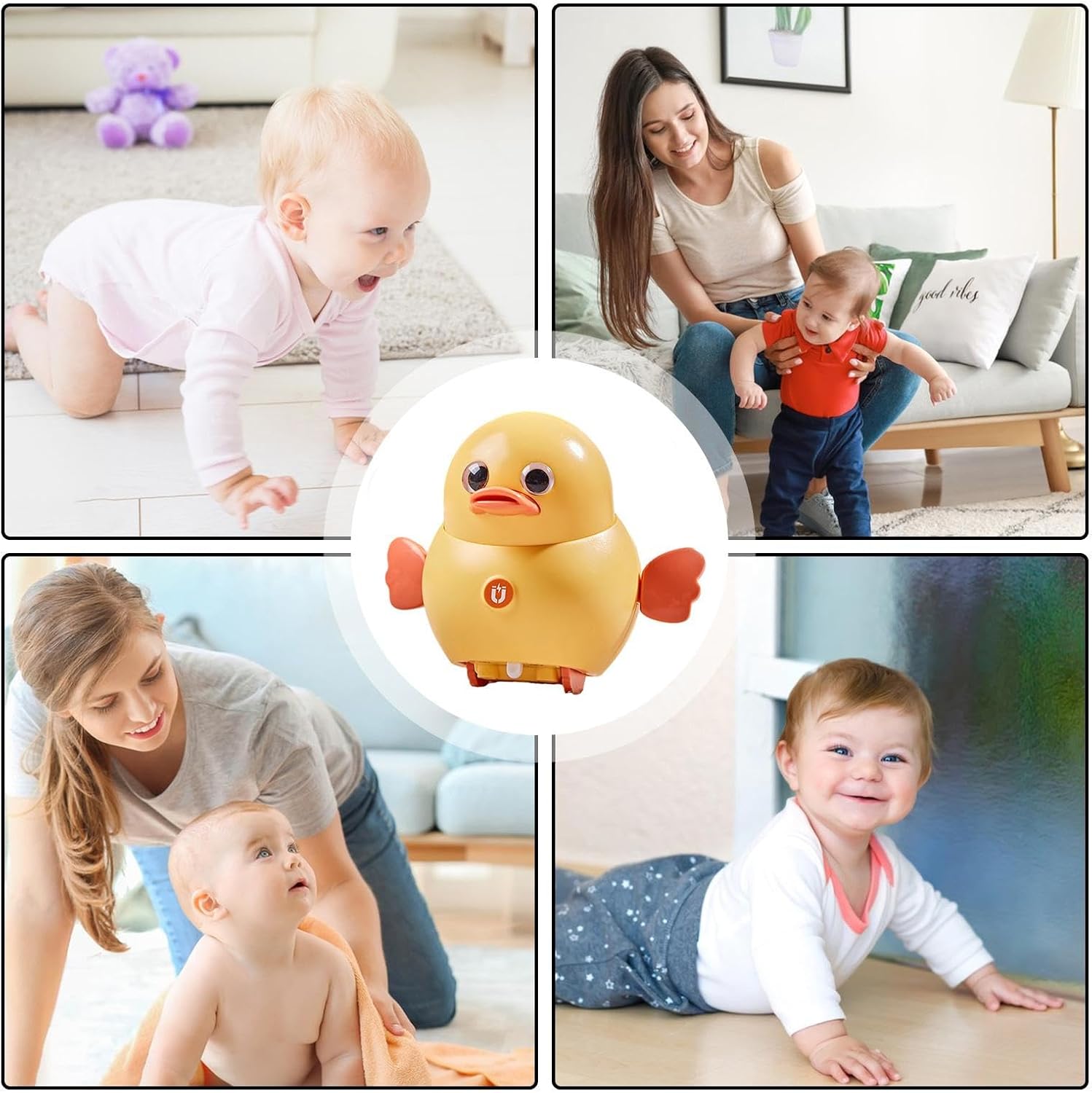 Strisciare con l'anatra: lascia che il tuo bambino viva l'emozione di strisciare con un giocattolo musicale d'anatra interattivo. La funzione oscillante la guida e stimola il movimento, migliorando le capacità motorie e la curiosità. Gioco di gruppo migliorato: grazie alla funzione di adsorbimento magnetico, il nostro giocattolo musicale anatra può creare una lunga linea, mantenendo i tuoi divertiti e attivi mentre giocano insieme. Luce notturna lenitiva: questo giocattolo musicale anatra può accompagnarli senza abbagliare perché ha due modalità di illuminazione: fissa o lampeggiante. L'illuminazione morbida può creare un'atmosfera calda e rilassante per andare a dormire. Premere lo stomaco per aprire e chiudere la funzione notturna. Melodie melodiche: con una ninna ninna che fonde il rumore bianco e le onde dell'oceano della natura, questo giocattolo musicale anatra può fornire melodie rilassanti per calmare e confortare i tuoi. Inoltre, offre melodie personalizzate per le preferenze musicali di tuo figlio. Materiale ABS affidabile: il nostro giocattolo musicale anatra promette una garanzia di sicurezza con il suo materiale ABS resistente alle cadute e delicato sulla pelle. Il suo design resistente agli urti e durevole garantisce che il bambino sia protetto dalle cadute, rendendolo un'opzione affidabile per i genitori.