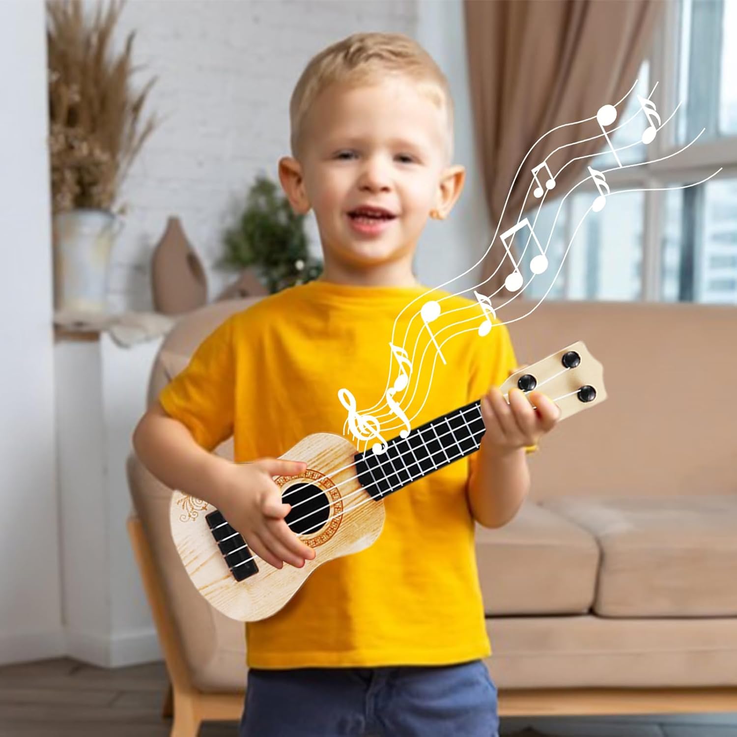 Aspetto realistico: questo ukulele per bambini utilizza venature del legno realistiche per insegnare ai bambini come utilizzare strumenti reali e ispirare una passione permanente per la musica e l'arte. Si adatta alle mani dei bambini: Progettato per i bambini, questo mini ukulele è dotato di corde in nylon soft-touch che proteggono le dita sensibili. Le sue dimensioni compatte e il design ergonomico lo rendono facile da usare per i bambini. Struttura : realizzato con materiali ecologici, questo ukulele per bambini presenta una struttura con una superficie resistente all'usura per garantire che possa resistere alle avventure quotidiane e alle ore di gioco. Lezioni di musica per bambini: incoraggia gli aspiranti musicisti insegnando la teoria musicale di base e un repertorio semplice, migliorando la coordinazione occhio-mano e promuovendo il senso del ritmo e del suono. REGALO PREmuroso: delizia i tuoi bambini con il nostro ukulele per bambini, confezionato in una splendida confezione regalo. Rafforza l'unità familiare, custodisci momenti speciali e crea ricordi duraturi attraverso la musica allegra.