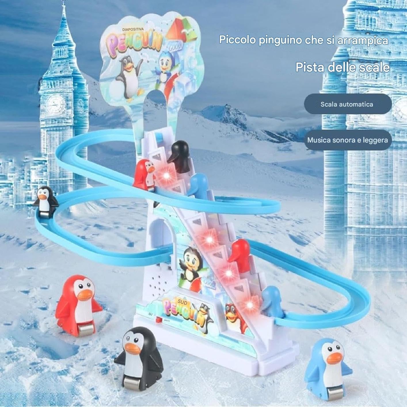 Ore di divertimento: i pinguini giocosi scivolano lungo i binari mentre corrono in questo divertente gioco di corse di pinguini. Fornisce un'esperienza emozionante e interattiva per i bambini, incoraggiando risate e partecipazione Dai energia alle tue occasioni: un'aggiunta perfetta a qualsiasi celebrazione, il giocattolo scorrevole Penguin aggiunge eccitazione con musica vivace e LED lampeggianti. Mentre i pinguini scivolano giù, luci vibranti e suoni allegri un'atmosfera festosa che terrà tutti impegnati e divertiti Divertente set da gioco del : incoraggia il gioco attivo di figlio con l'accattivante giocattolo dello scivolo del che promuove la coordinazione occhio-mano e l'interazione sociale. Guarda come corrono, scivolano e planano i pinguini sulla pista con gli amici o la famiglia, creando un set di gioco coinvolgente e interattivo divertente per tutte le età Aggiornamento senza interruzioni: caratterizzato da un semplice design funzionante a batteria, facile da installare e utilizzare con 2 batterie AA non incluse, il giocattolo Penguin Race Tracks garantisce che il divertimento inizi rapidamente; goditelo ovunque, a casa o all'aperto Scelta ideale: con una pista da corsa colorata e funzionalità interattive, questo giocattolo con scivolo a forma di è un modo per portare divertimento e gioia festosi ai bambini di tutte le età. Il regalo di Natale o di compleanno, è un modo per coinvolgere e intrattenere i bambini incoraggiandone le capacità motorie e la creatività