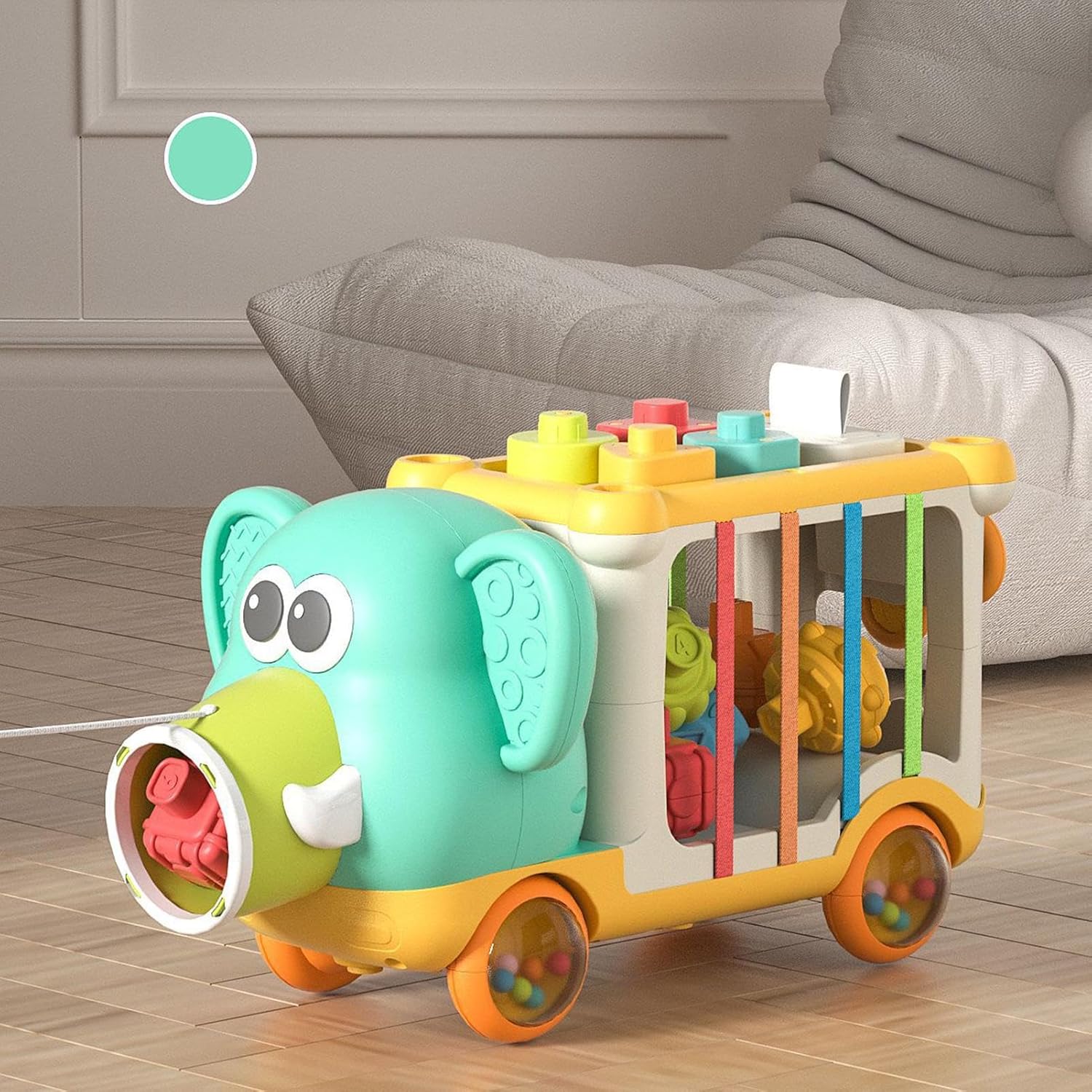 Indossare bene: realizzato con addominali robusti e silicone, questo giocattolo per camion di elefanti resiste a ripetuti giochi e uso a lungo termine, mai rottura o deformante, adatto al divertimento a lungo termine dei bambini Giocattoli divertenti: promuove le abilità cognitive attraverso modalità di gioco divertenti, aiutando i bambini a conoscere forme e colori migliorando al contempo la consapevolezza spaziale e la destrezza manuale Facile per gli utenti: incorporando un design del giroscopio rotante, i giocattoli per camion di elefanti aiutano i bambini a perfezionare le loro abilità di mira, rendendo il gioco rotante più accurato e divertente Rafforzare il movimento fine: questo giocattolo per camion per elefanti aumenta le capacità motorie e migliora il coordinamento fisico essendo facile da tirare senza elettricità, promuovendo l'apprendimento dei bambini a camminare e gattonare con la corda di trazione inclusa Ideale per occasioni speciali: ideale per compleanni e vacanze, questo giocattolo unico incoraggia i bambini ad imparare e crescere in modo creativo, rendendolo un regalo educativo e coinvolgente fantastico