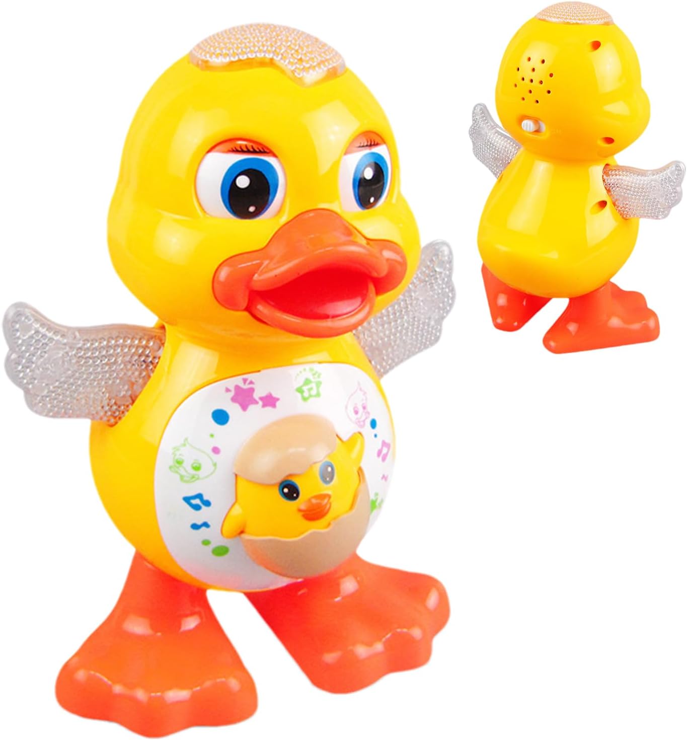 Luci Notturne:'affascina con effetti luminosi dinamici, transizioni cromatiche e accenti LED brillanti su testa e zampe, ottima per divertimento dopo il tramonto, praticamente automatica. Intrattenimento Ritmico: Presenta movimenti animati di , rotazioni del corpo e sincronizzazione con musica ritmata per un'esperienza di gioco coinvolgente Giocattolo Sensoriale: Promuove lo sviluppo sensoriale e supporta l'educazione precoce, unendo il miglioramento delle capacità audiovisive al gioco per ispirare curiosità e crescita. Genitori-Figli: Promuove intrattenimento condiviso rafforzando i legami affettivi, offrendo alle famiglie esperienze interattive genitori-figli in modo caloroso per momenti preziosi Sicuro e Riutilizzabile: ballerina in ABS resistente garantisce sicurezza e durabilità, ideale per divertimento quotidiano mantenendo integrità dopo ripetuti utilizzi