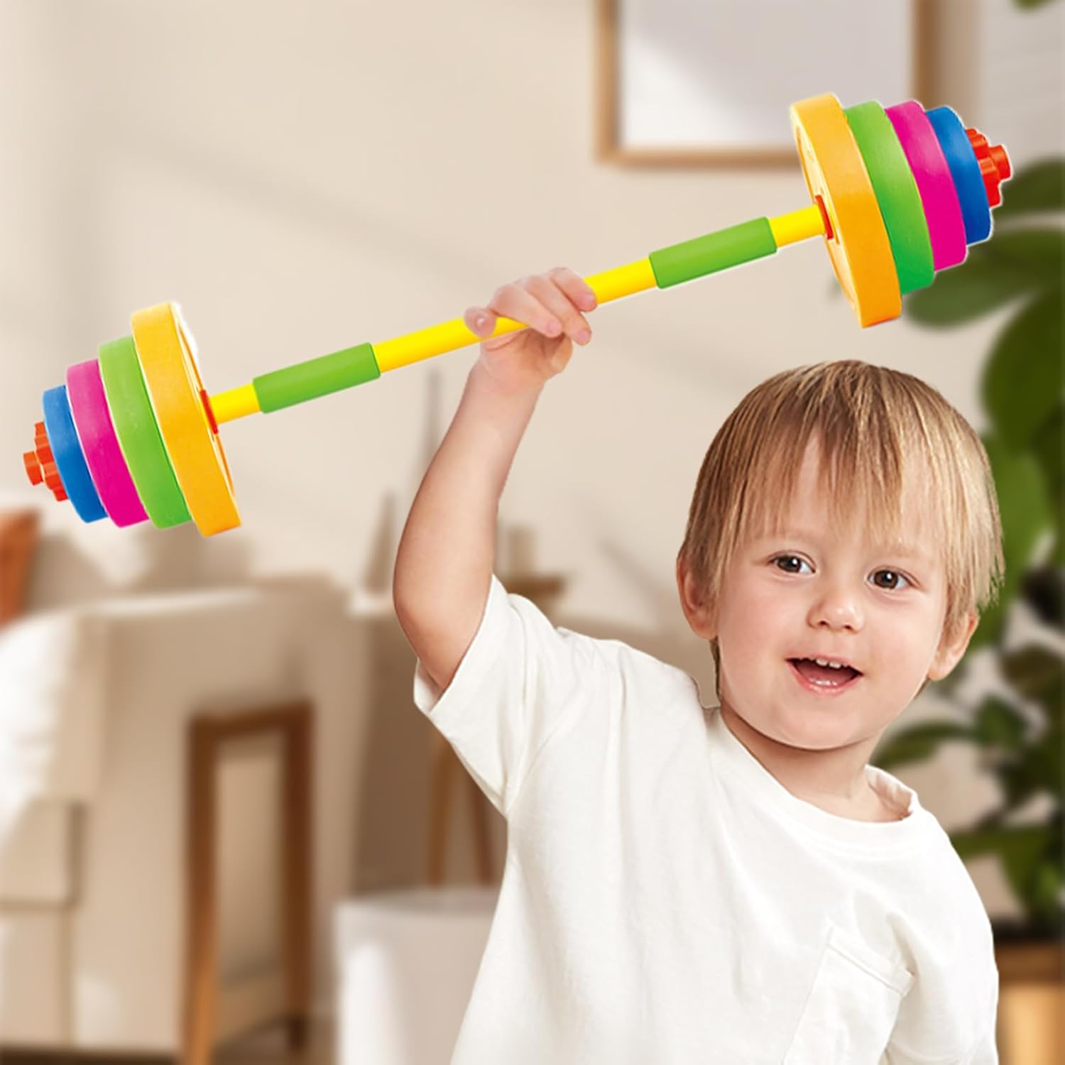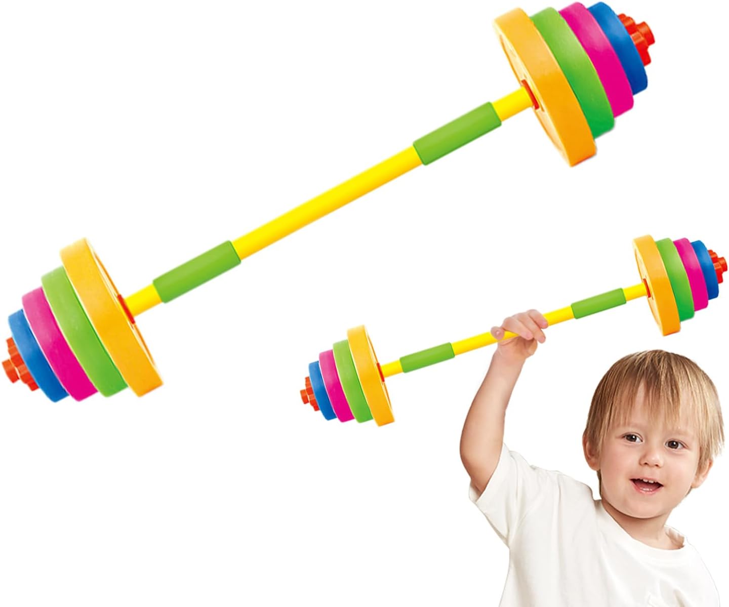 Facile da regolare: regola facilmente il peso di questo giocattolo con bilanciere alla forza crescente del tuo bambino, promuovendo così il continuo sviluppo fisico e miglioramento del fitness Tempo di gioco sicuro: delizia i tuoi bambini con questo giocattolo con bilanciere, realizzato interamente in materiale sicuro e li protegge dalle sostanze nocive. La squisita lavorazione garantisce un gioco sicuro Per la maggior parte delle occasioni: il bilanciere giocattolo è ideale per soddisfare le esigenze di allenamento dei bambini. È adatto sia per interni che per esterni e garantisce una versatile attività fisica Facilitare la crescita fisica: il giocattolo con bilanciere è un ottimo modo per promuovere la crescita fisica dei bambini. Promuovendo la costruzione muscolare e la coordinazione attraverso l'esercizio, i bambini hanno la possibilità di modellare il proprio corpo con divertimento Porta un sorriso nel gioco: utilizzando il giocattolo con bilanciere, i bambini possono divertirsi, rendere lo sport più attraente e contribuire alla crescita muscolare e allo sviluppo muscolare in modo divertente e interattivo
