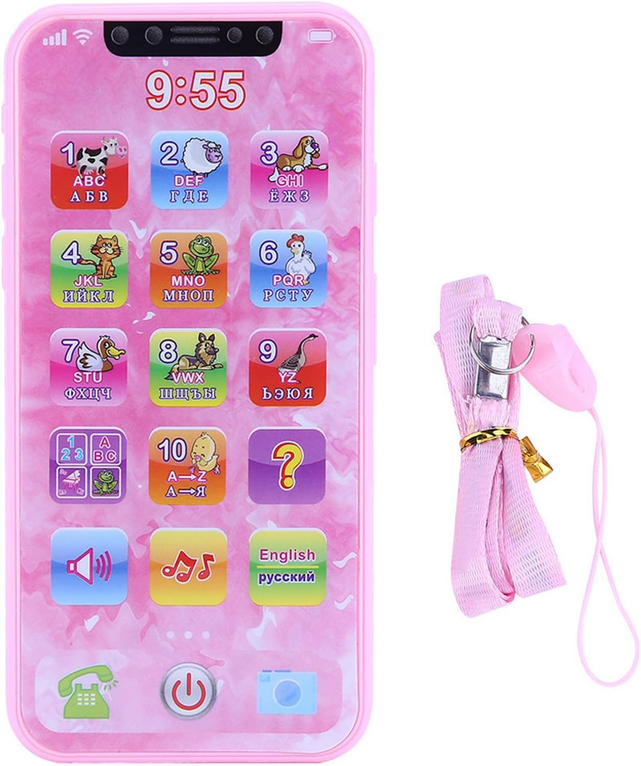 Il giocattolo è realizzato in plastica di alta qualità, ecologico e non tossico, sicuro per giocare Simulato modellazione cellulare e cartoni animati modelli sono così divertenti, suscitare l'interesse di Aiuta a sviluppare l'udito, la percezione musicale e la capacità di pensiero del bambino e allena la sua memoria e concentrazione Viene fornito con una corda sospesa, facile da trasportare, perfetta macchina di apprendimento prescolare per oltre 3 anni Contiene una conoscenza enorme, può conoscere l'alfabeto, i numeri, l'aggiunta matematica di base e la sottrazione, ecc