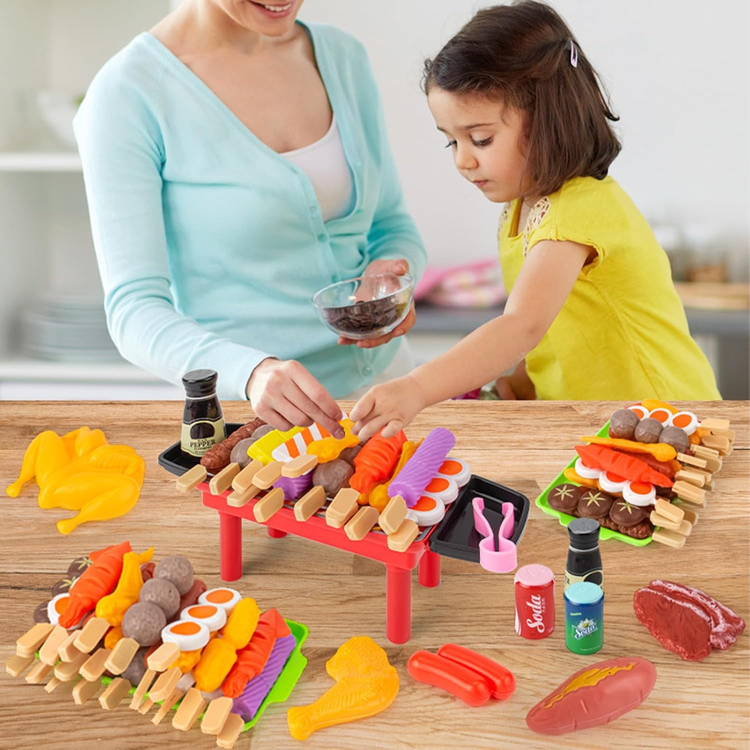 Divertimento con giochi di ruolo: questa griglia per bambini offre ai tuoi bambini la possibilità di giocare come chef, griller o cameriere e divertirsi con cibo, condimenti e strumenti per grigliare realistici, che li fanno sentire come se fossero in una scena barbecue. Aumenta la cooperazione: questa griglia giocattolo favorisce un senso di lavoro di e cooperazione tra bambini o tra genitori e figli, poiché richiede loro di lavorare insieme e coordinare le loro azioni. Materiale di lunga durata: realizzato in materiale ABS di alta qualità, questo giocattolo per barbecue è robusto e durevole. Può resistere a ore di finto gioco e divertimento all'aria aperta. Splendido regalo: tratta i tuoi bambini con questo Play Grill che imita la esperienza del barbecue. È splendido regalo sia per ragazzi che per ragazze e può essere un regalo fantastico per il compleanno, Natale, la festa dei bambini o qualsiasi occasione. Migliora l'abilità dei bambini: Kids BBQ Grill Playset coltiva ed esercita l'abilità cognitiva dei bambini, il riconoscimento del colore, l'immaginazione e la creatività.