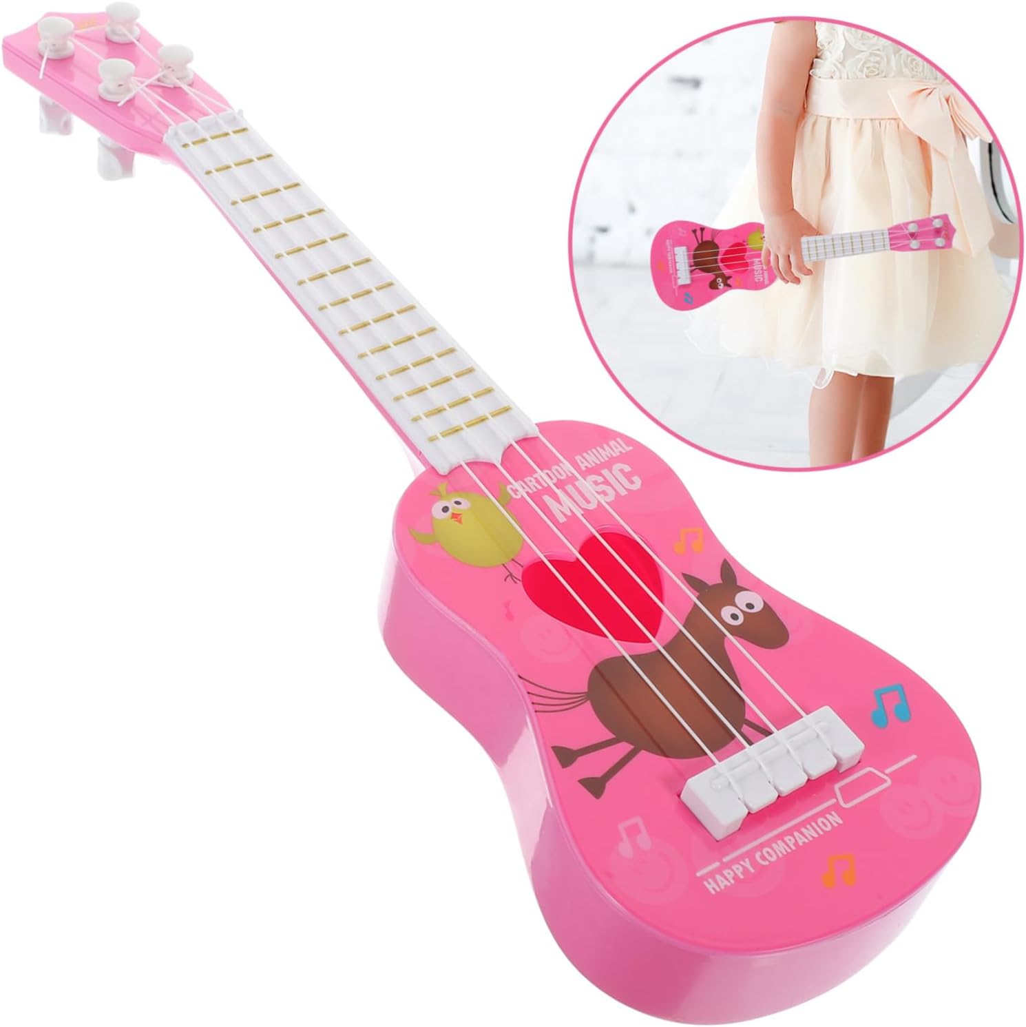 Strumento musicale: la durezza del materiale plastico fa sì che questo ukulele non deformi facilmente con la normale usura, ukulele per principianti Ukulele per bambini piccoli: questo giocattolo creativo per chitarra è un pratico per i bambini interessati alla musica, e piacerà loro, giocattolo musicale per bambini piccoli Giocattolo per bambini: lavorazione eccezionale, design ragionevole, stabile e pratico, ti offrirà una buona esperienza di utilizzo, giocattolo per ukulele per bambini Strumento per bambini piccoli: insegnare ai bambini a suonare insieme, incoraggiarli a suonare e creare prestazioni brillanti, ukulele per bambini Ukulele per bambini: un ottimo strumento educativo per la prima infanzia, ideale per l'asilo o la prima infanzia, ukulele per bambini principianti