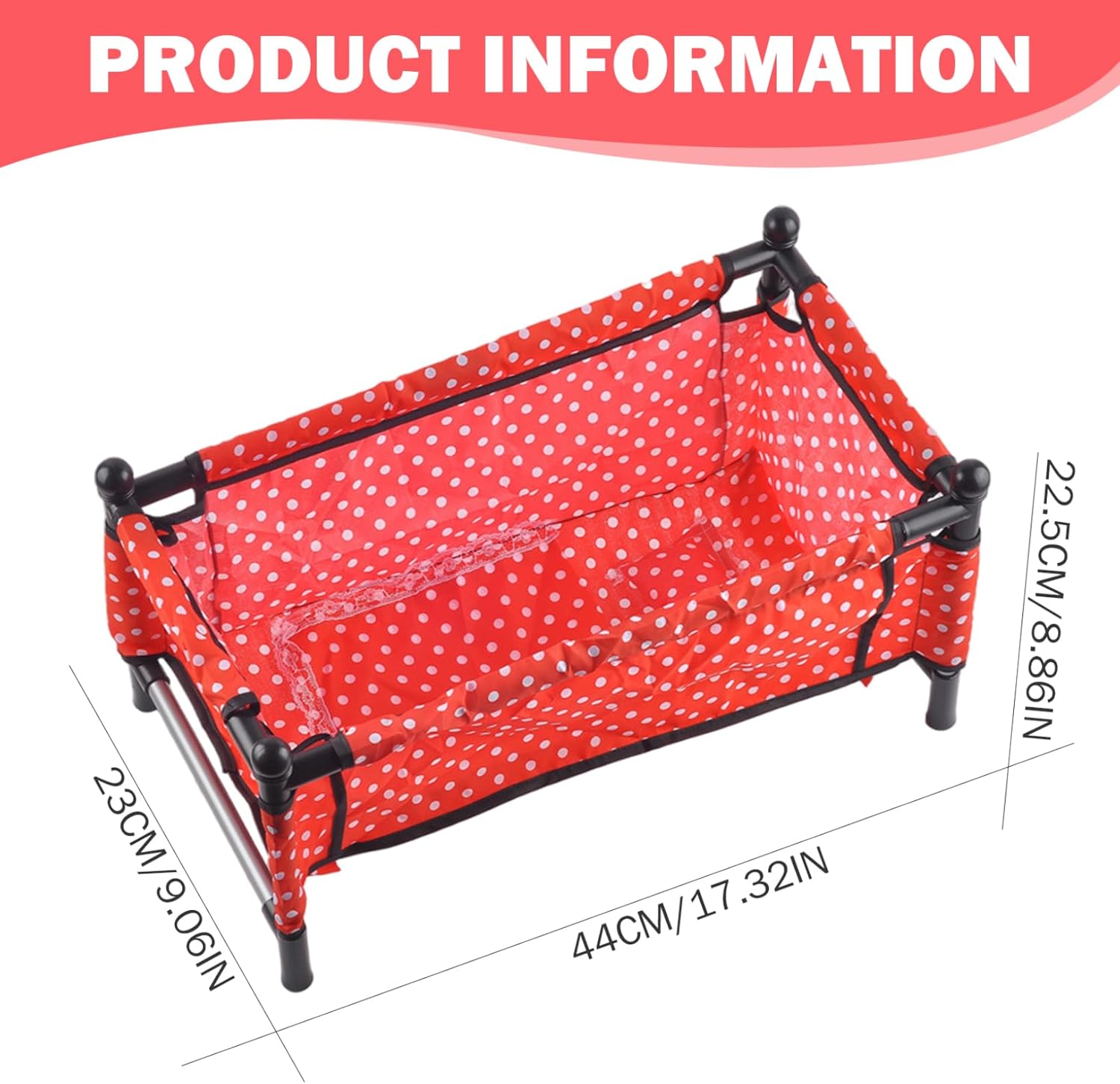 Perfetto per il gioco di ruolo: questo presepe per bambole raddoppia come carrozzeria e passeggino, migliorando il gioco immaginativo per bambini dai 3 anni in su..Incoraggia lo storytelling, il nutrimento della creatività e lo sviluppo di belle capacità motorie attraverso scenari interattivi di gioco di ruolo. Ideale per i bambini: sia per compleanni, vacanze o occasioni speciali, questo presepe per bambole fa una scelta eccellente..Il suo design versatile e le caratteristiche coinvolgenti delizieranno sicuramente i bambini piccoli promuovendo il gioco immaginativo. Design compatto e portatile: il presepe per baby bambole pieghevole è progettato per una facile conservazione e portabilità, rendendolo perfetto per il gioco in viaggio..La sua costruzione leggera consente ai bambini di trasportarla senza sforzo, garantendo ore di divertimento fantasioso di ruolo ovunque vadano. Elegante e giocosa estetica: con uno sfondo rosso vibrante con punti bianchi, questo cucciolo di bambola aggiunge un tocco affascinante e accattivante a qualsiasi sala giochi..Il suo design incoraggia la creatività e lo rende un'aggiunta ideale alla collezione di bambole di un bambino. Materiali affidabili e sicuri: realizzati con materiali di alta qualità e non tossici, questo letto per bambole per bambini garantisce sicurezza e durata per l'uso duraturo..I genitori possono sentirsi sicuri sapendo che il loro bambino sta giocando con un giocattolo che soddisfa gli standard di sicurezza.