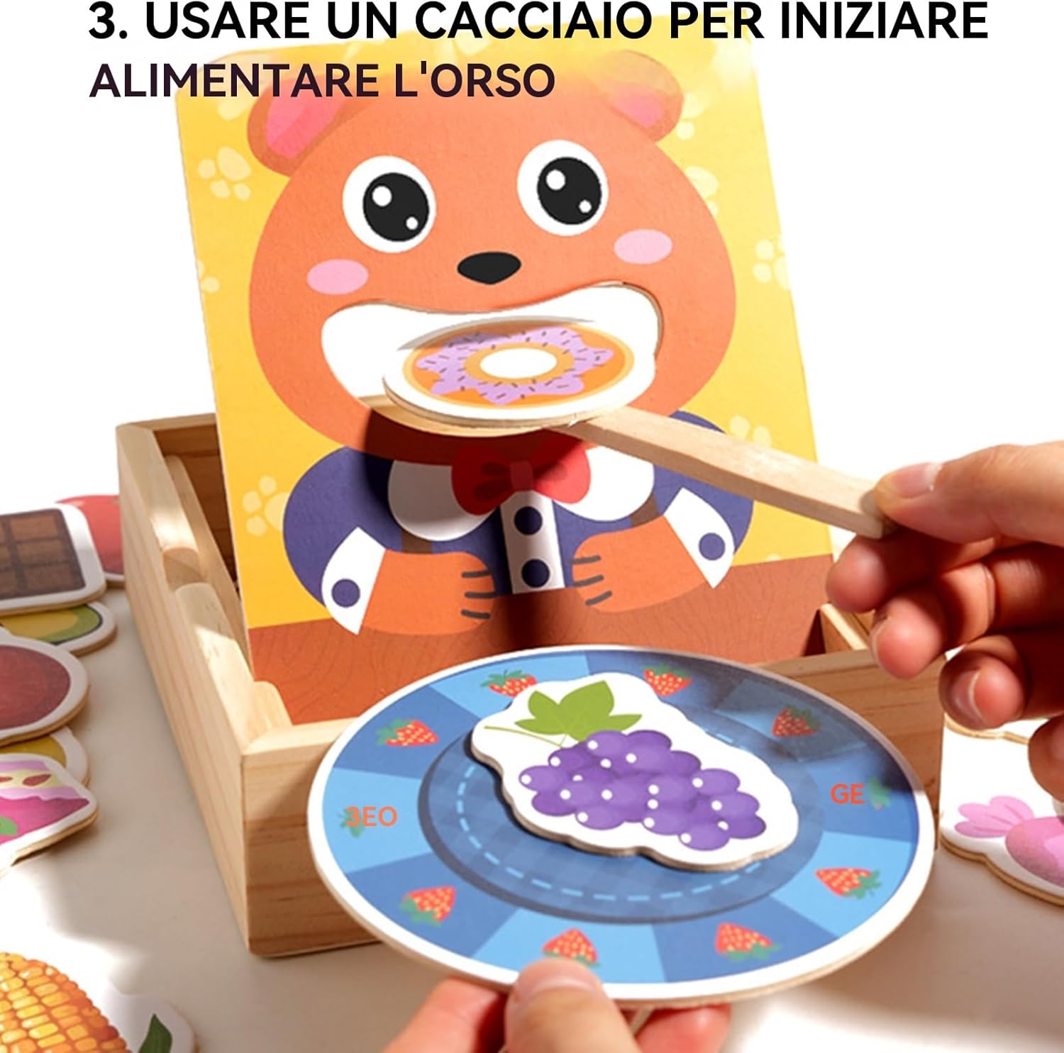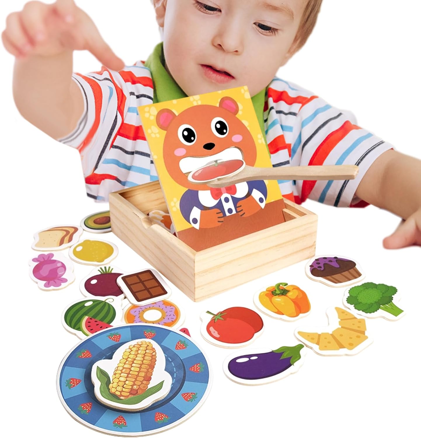 Pratica di categorizzazione degli alimenti: questo giocattolo per l'alimentazione in legno favorisce la categorizzazione alimenti per la cura di sé attraverso l'apprendimento sottile, aiutando i bambini a nell'uso degli utensili in un gioco di alimentazione simulato, migliorando stesso le abilità della vita quotidiana in modo naturale ed Riconoscimento alimentare: incoraggia l'esplorazione attraverso l'educazione alimentare quotidiana, schede alimentari per sviluppare la conoscenza dei dessert di frutta e verdura per la crescita cognitiva Sviluppa abilità occhio-mano: questo giocattolo in legno favorisce lo sviluppo di piccoli muscoli, allena le capacità incoraggiando la concertazione e utilizzando pinze di legno per migliorare la capacità di presa attraverso scenari di gioco interattivi in sicurezza Ispira l'apprendimento del gioco di ruolo: con una concertazione sull'alimentazione degli animali, il gioco di ruolo in supporta il di gioco interattivo incoraggiando la responsabilità di cura e rafforzando i legami genitore-figlio, promuovendo al contempo l'apprendimento basato sul gioco e le abilità socio-emotive in modo naturale Conservazione efficiente dei giocattoli: il design dello stoccaggio in legno naturale promuove l'organizzazione e la facile gestione dei giocattoli, favorendo buone abitudini di conservazione mantenendo un ambiente di gioco ordinato per una facile pulizia e un utilizzo ottimale dello spazio