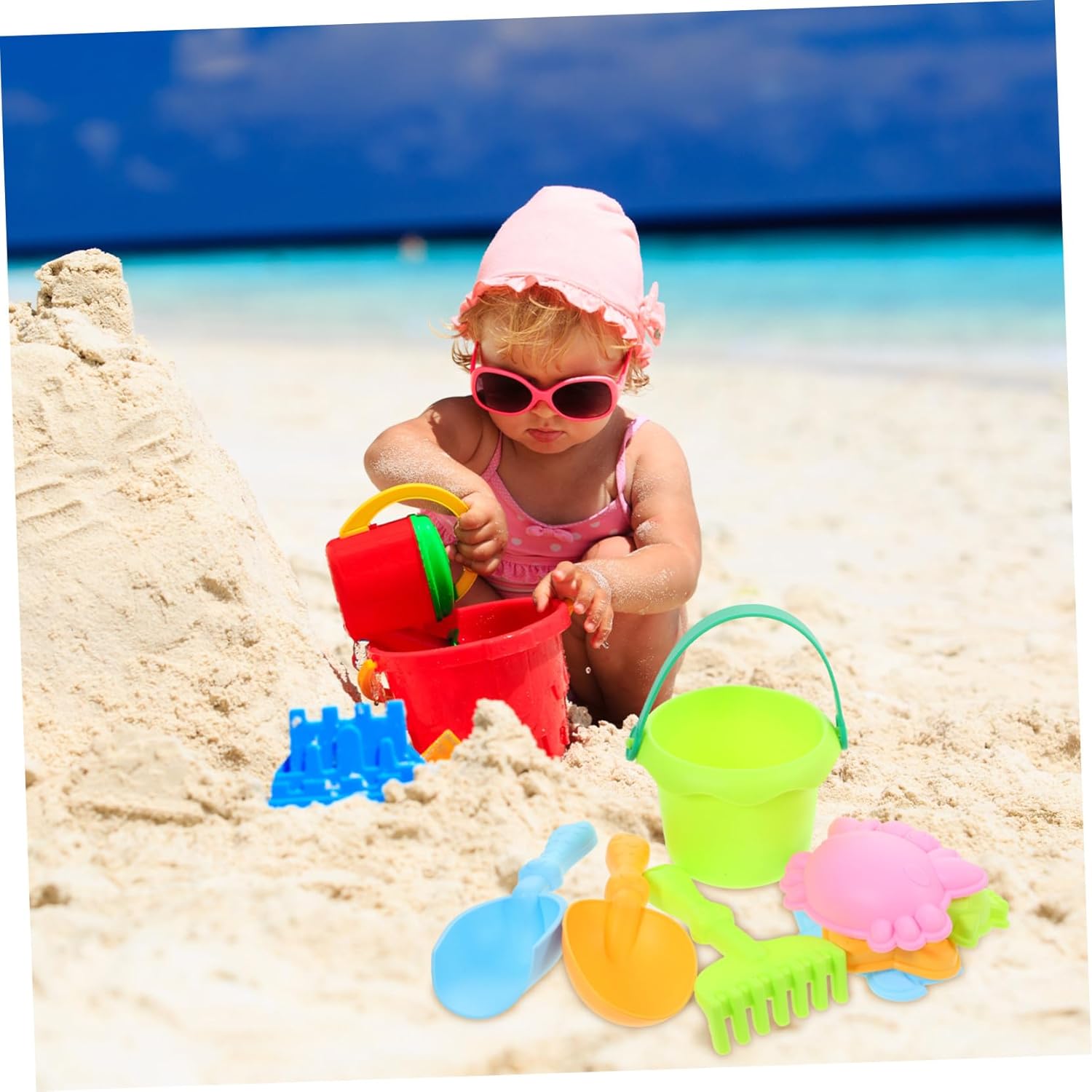 Giocattoli da spiaggia: accuratamente lucidati, la superficie è liscia e non farà male al tuo bambino, sicuri e affidabili, giocattoli per bambini Giocattoli per bambini: questi giocattoli da spiaggia sono molto adatti per, hanno colori vivaci e di buona fattura e sono all'aperto per i più piccoli Giochi di sabbia: soddisfa le varie esigenze di gioco sulla sabbia dei tuoi bambini, è molto divertente e bello e fa divertire, giocattoli da spiaggia all'aperto per ragazze: i giocattoli da spiaggia sono fatti di plastica, sicuri e durevoli, i colori sono e possono attrarre, giocattoli per bambini all'aperto Gioco di ruolo da spiaggia: il regalo perfetto per i bambini, che promuove le abilità pratiche e le capacità di coordinamento dei bambini. È molto utile esercitarsi con le parole con i giocattoli di sabbia