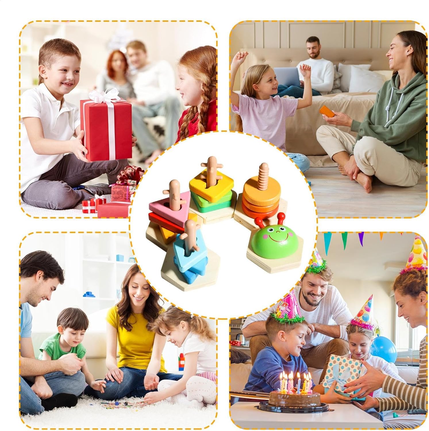 Sviluppo Cognitivo: Il processo di apprendimento dello smontaggio unito alla pratica ripetuta di assemblaggio potenzia il controllo motorio fine, stabilendo una base per la crescita creativa ed educativa continuativa Appropriata: Difficoltà graduale studiata per la prima infanzia, garantisce comfort con bordi arrotondati levigati e design intuitivo facile da afferrare per manine piccole. Divertimento di Ruolo: Ispira creatività manuale con componibili che integrano elementi di ruolo, fornendo giochi scenici per migliorare il genitore-figlio in modo giocoso e interattivo. Fondamenti Didattici: Tramite impilamento, i bambini potenziano comprensione matematica elementare e abilità motorie, affiancate da coordinazione occhio-mano attraverso abbinamento di forme geometriche con approccio ludico Combinazioni Cromatiche Ricche: Conla logica spaziale e affina le abilità di soluzione problemi integrando colori vivaci e forme diversificate in un'esperienza dinamica d'impilamento per apprendimento multidimensionale