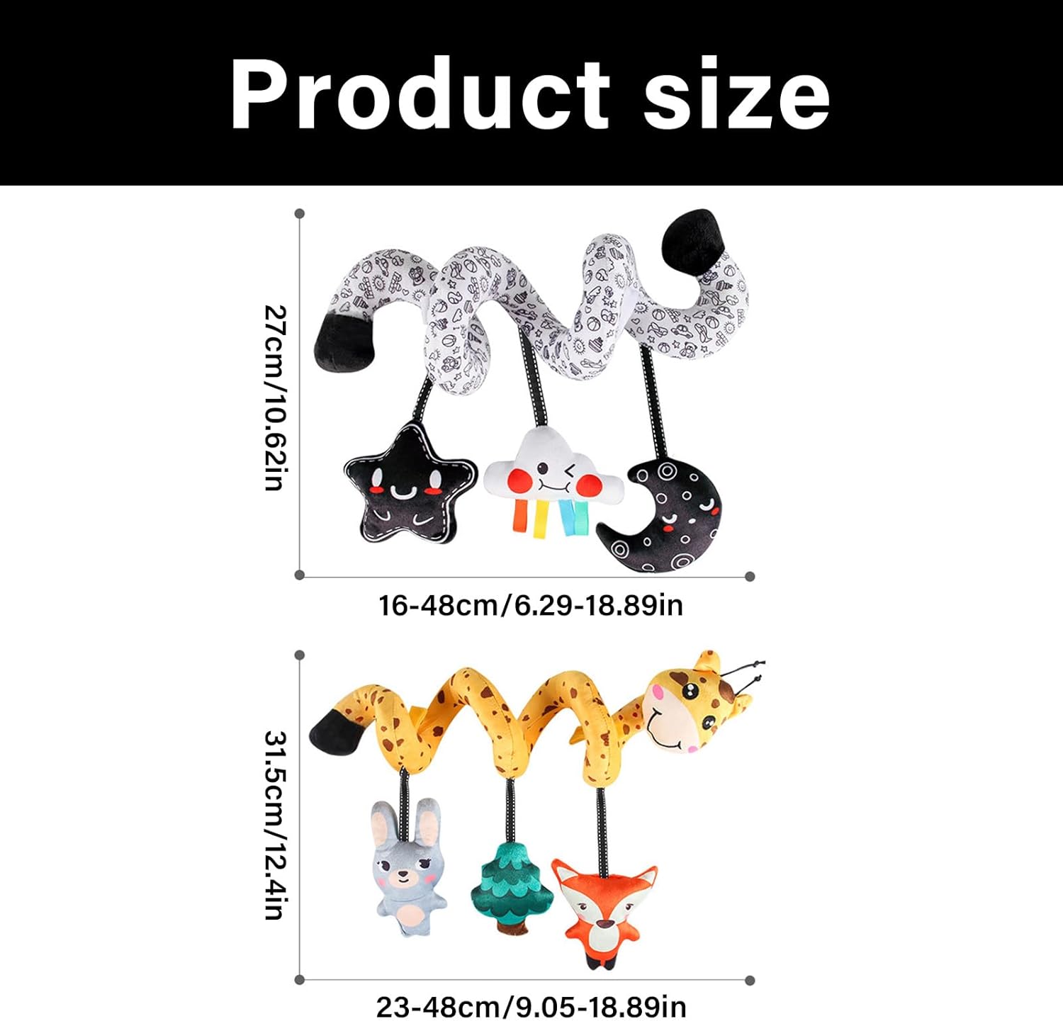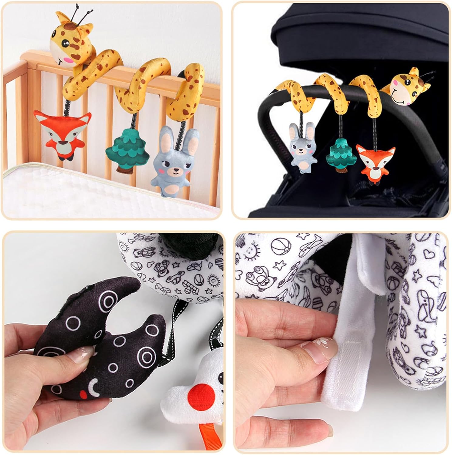 Il fissaggio perfetto a marsupi e seggiolini auto durante le gite in famiglia o tutti i giorni Ottimo per i neonati da 0 a 3 anni, supporta cognitivamente Giocattolo per passeggino multifunzionale con materiale di sicurezza che promuove lo sviluppo sensoriale attraverso un design colorato e morbido Costruito con cuciture rinforzate e tessuto resistente alle intemperie, resiste all'uso frequente mantenendo un colore vibrante lavaggio dopo lavaggio Questo giocattolo da appendere al passeggino con bellissimi sonagli per fornire stimolazione uditiva/visiva e allo stesso tempo Costruzione antistrappo per garantire resistenza all'aperto