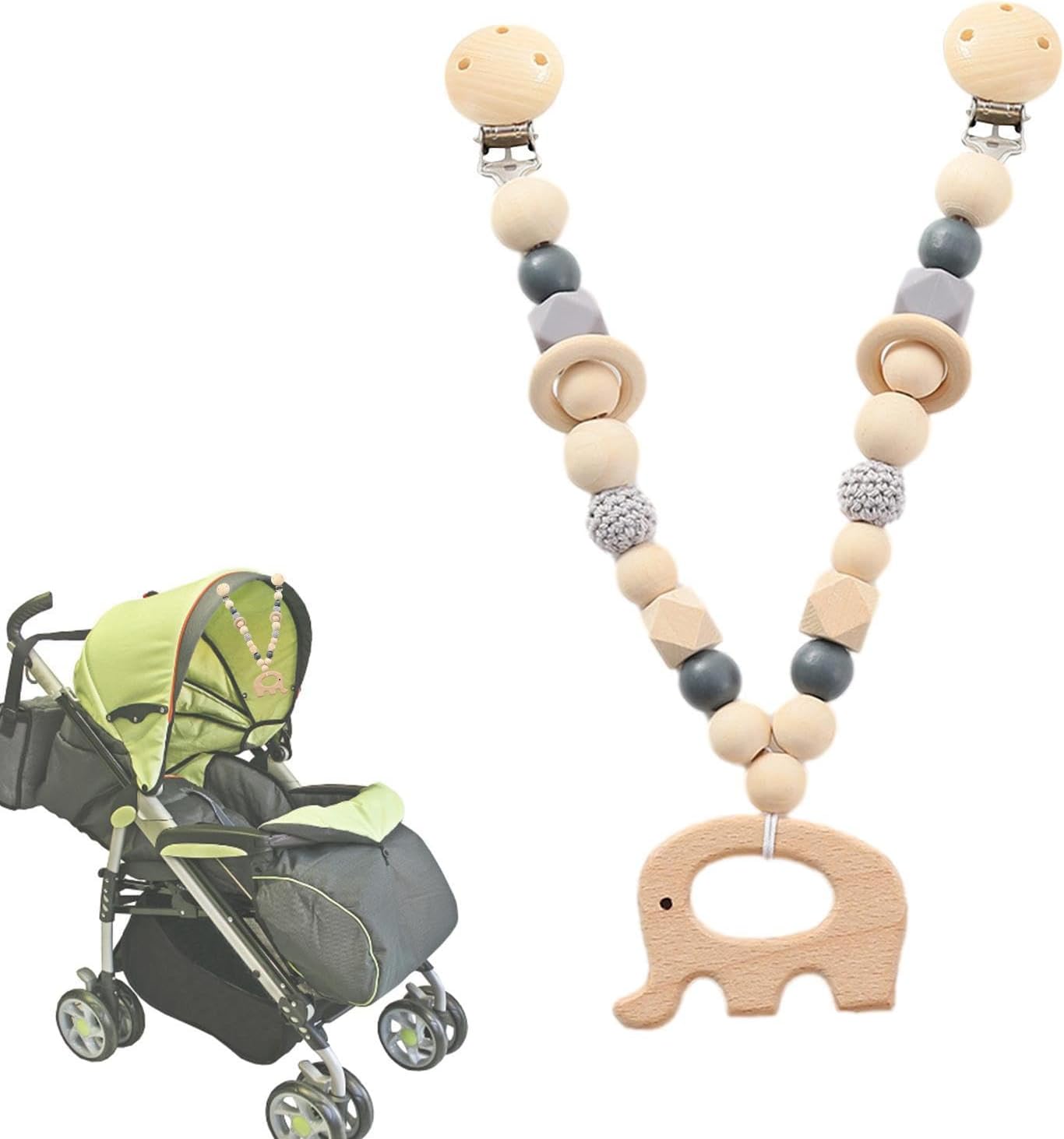 Longevità garantita: con una consistenza molto liscia e un'elevata resistenza alla trazione, questo giocattolo sospeso realizzato in legno naturale sicuro offre un sollievo rilassante dal disagio della dentizione ed è a prova di saliva per una maggiore sicurezza Calma e coinvolgi: incoraggia le capacità motorie, stimola l'immaginazione e incoraggia l'apprendimento durante il gioco con questo giocattolo interattivo da appendere per passeggino Ampiamente usato: taglia la lunghezza perfetta, questa versatile catena giocattolo è fissata saldamente a passeggini, culle e luoghi Fascino accattivante: migliora l'aspetto del passeggino con un giocattolo vibrante da appendere che si aggancia senza sforzo decora e si abbina a tutti i modelli di passeggino, perfetti per ragazzi e ragazze. Il pacchetto include: Realizzato a mano con tessuti morbidi e naturali, questo delicato giocattolo da appendere al passeggino offre un'opzione sostenibile ed ecologica per le prime esplorazioni del tuo bambino.