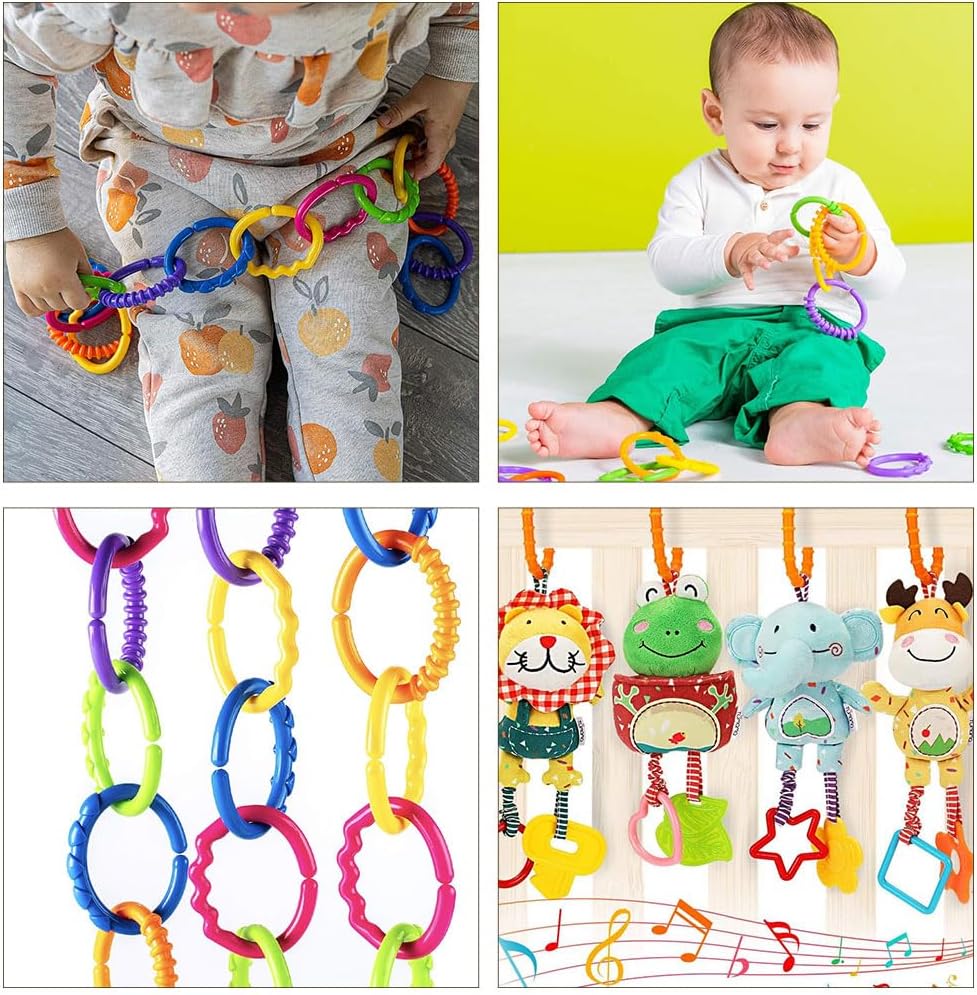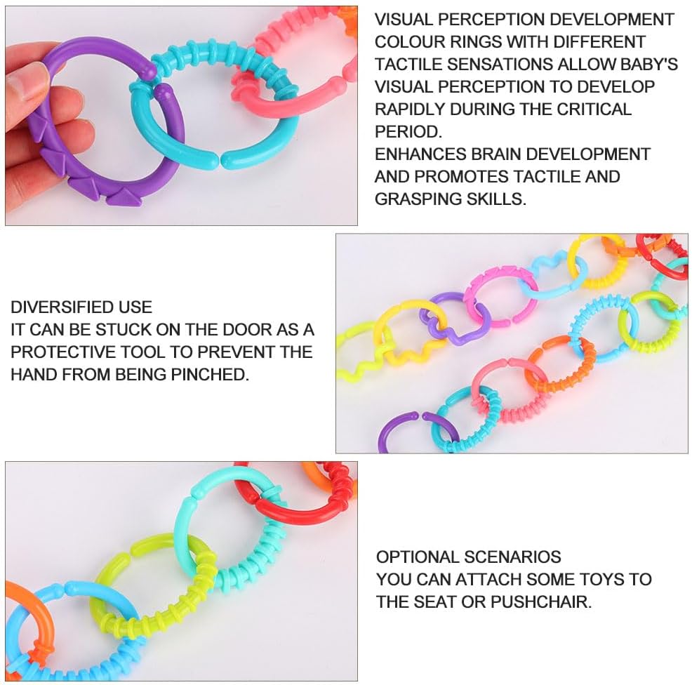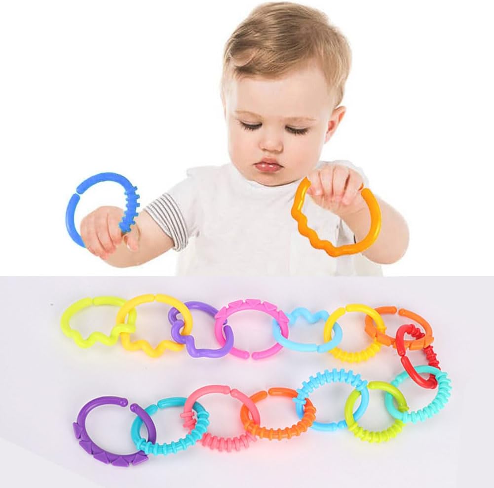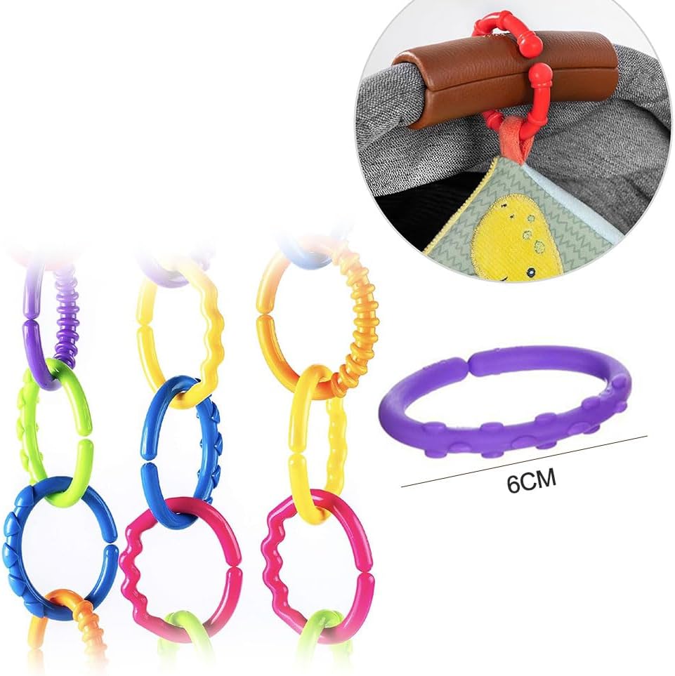 24 anelli colorati, possono essere appesi in carrozzina o recinto per bambini, 8 diversi disegni tattili sulle maniglie, perfetti per l'allenamento sensoriale visivo, tattile e uditivo, giocattoli educativi per le capacità motorie, adatti per bambini dai 3 mesi in su. Realizzato in plastica ecologica di alta qualità, con diversi colori e superfici, che possono essere toccate, gustate o sentite, ricchi di colori e trame, stimolando lo sviluppo visivo del bambino Anello di colore con diverse sensazioni tattili, per promuovere il senso del tocco del bambino e lo sviluppo della sua capacità di afferrare --- Diverse modalità di utilizzo Uso: Decorato nel sedile di sicurezza o nel passeggino, può essere appeso al telaio fitness del giocattolo per il bambino da tirare, può anche essere appeso sul passeggino con i giocattoli non cadono facilmente. I bambini più piccoli possono aggrapparsi al tappetino da gioco, al telaio del fitness, esercitarsi sulla presa, la precisione e la forza delle mani, i più grandi possono sviluppare le proprie combinazioni multiforme Uso 2: la catena può essere assemblata in diverse lunghezze, può essere utilizzata come accessorio per gancio per appendere animali di peluche nella carrozzina o nel recinto del bambino, può essere utilizzata in diversi modi, provoca adeguatamente lo sviluppo dei bambini dai 3 anni e può anche essere utilizzata per alleviare il dolore alla dentizione masticando la catena. Grazie al meccanismo di aggancio semplice, vengono allenate anche le capacità motorie Nota: i nostri prodotti dopo un lungo periodo di logistica, sarà nel processo di trasporto in una certa estrusione e fattori di insicurezza portare ad alcuni danni al prodotto, se c'è una situazione del genere, vi preghiamo di contattarci, saremo in grado di fornire un servizio post-vendita soddisfacente in 12 ore.