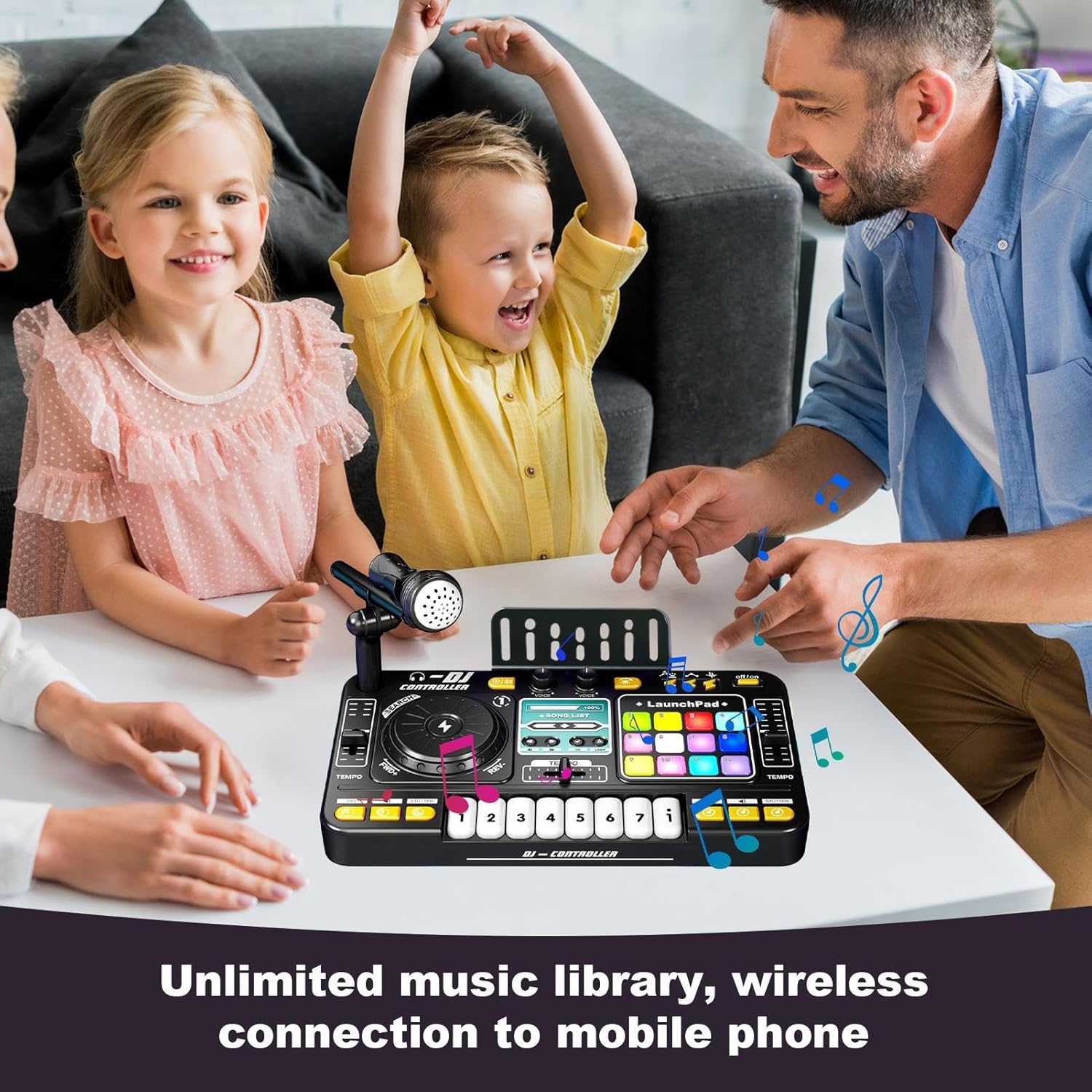 Compatto e leggero: promuovere il gioco ininterrotto, questo giocattolo per pianoforte per un miscelatore di musica trasuda la creatività. È dotato di registrazione/riproduzione, connettività mobile wireless, 3 effetti DJ, 12 variazioni MIDI e 12 effetti sonori , tutti convenientemente confezionati per il divertimento all'aperto Migliora le capacità creative: design realistico con microfono e funzionalità wireless immerge i bambini nell'esperienza del giradischi DJ, scatenando la loro creatività e trasformandoli in piccole mentre si dondola con stile Facile da usare: lascia che i bambini ospitino piccoli concerti: connettiti in modalità wireless a pH, crea musica con amici e regola il microfono per ore di divertimento, migliorando i legami familiari con il piano giocattolo con microfono Ottimo regalo: Cool DJ Music Mixer Electric Toy per Little DJ, arricchendo la vita musicale per bambini e coltivando il loro interesse per la musica - Good come regalo di compleanno Materiale di qualità: le dimensioni facili da trasportare favoriscono la portabilità ottimale. Adatto a tutte le fasi delle abilità, consentendo agli utenti di bene nelle tecniche DJ e creare miscele uniche senza sforzo. Esplora più possibilità musicali mentre ispiri la tua creatività interiore