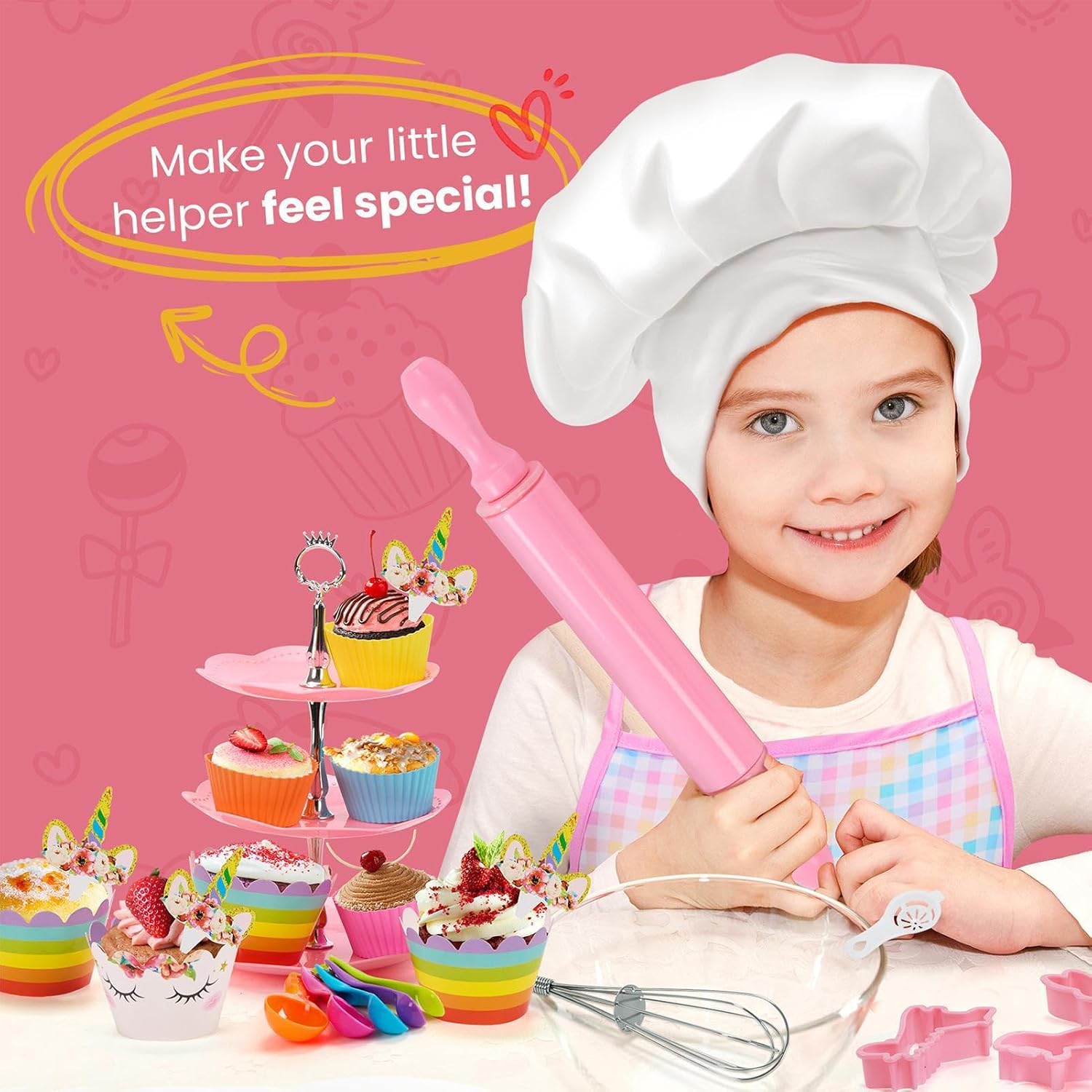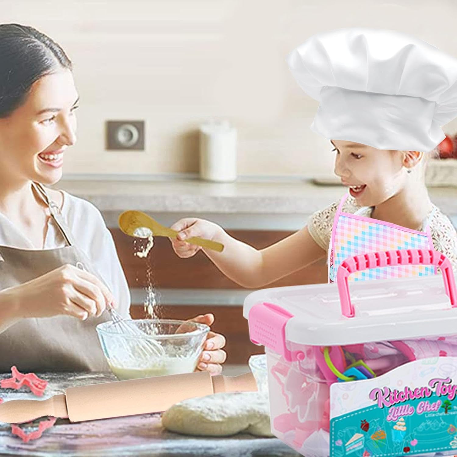 Niente stress: il nostro set di giocattoli da cucina include una scatola portatile facile da pulire che mantiene in ordine l'area di gioco. Completo di strumenti da forno e tortiere, questo set di accessori da cucina è il modo ideale per ispirare la creatività del tuo piccolo chef. Design regolabile: migliora i talenti culinari di tuo figlio con i giocattoli da cucina. Ti divertirai con il gioco di ruolo della cucina indossando un grembiule e un cappello regolabili mentre esplori comodamente le delizie della cottura al forno. Avventure di gioco di ruolo: i giocattoli da cucina stimolano l'immaginazione e la creatività del tuo bambino incoraggiando il gioco di ruolo, coltivando l'immaginazione, migliorando le abilità pratiche e incoraggiando lo sviluppo delle abilità durante le ore di avventura. Divertimento nel creare legami familiari: partecipa a una deliziosa sessione di cottura al forno, promuovi il legame genitore-figlio mentre migliori giocosamente le abilità culinarie con i giocattoli da cucina. REGALO PERFETTO PER PICCOLI CHEF: Delizia i tuoi amici con il nostro set di giocattoli da cucina, progettato per bambini dai 3 agli 8 anni per incoraggiare il gioco fantasioso e le abilità culinarie. Ideale per compleanni e feste di Natale.