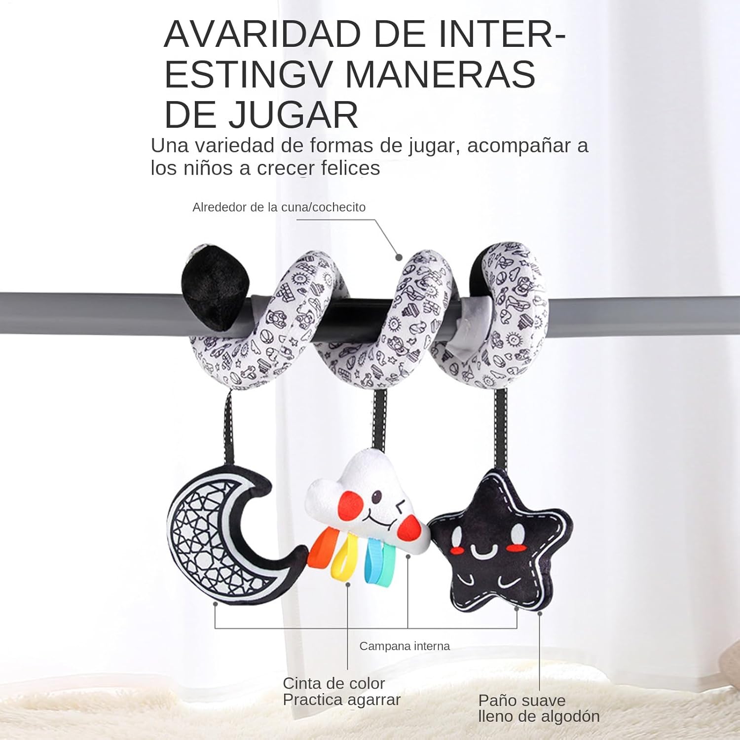 Design protettivo: La struttura robusta con flessibilità ottimale garantisce un perfetto accoppiamento ai sistemi di mobilità dei bambini e consente movimenti circolari continui senza grovigli per stimolare la scoperta sensoriale senza rischi durante le attività dinamiche Miglioratore della coordinazione dinamica: Gli effetti di rotazione attivati migliorano la sincronizzazione visiva e motoria attraverso elementi sospesi che stimolano la percezione tattile e ottimizzano il riflesso naturale della presa durante il gioco esplorativo Ideale per le feste - soluzione pratica per i regali dei bambini che richiedono adattabilità. Compatibile con passeggini standard, offre funzionalità quotidiane con un design che trasmette i migliori auguri. Elementi visivi accattivanti: i blocchi sfumati ad alto contrasto attirano l'attenzione e promuovono la concentrazione visiva, stimolando l'interesse per il riconoscimento dei colori e l'identificazione dei modelli durante il gioco Comfort sonoro emotivo: produce suoni armoniosi attraverso delicate campanelle, creando un'atmosfera rilassante che aiuta a regolare le emozioni dei bambini stimolando gradualmente e in modo sicuro il riconoscimento dei modelli sonori.