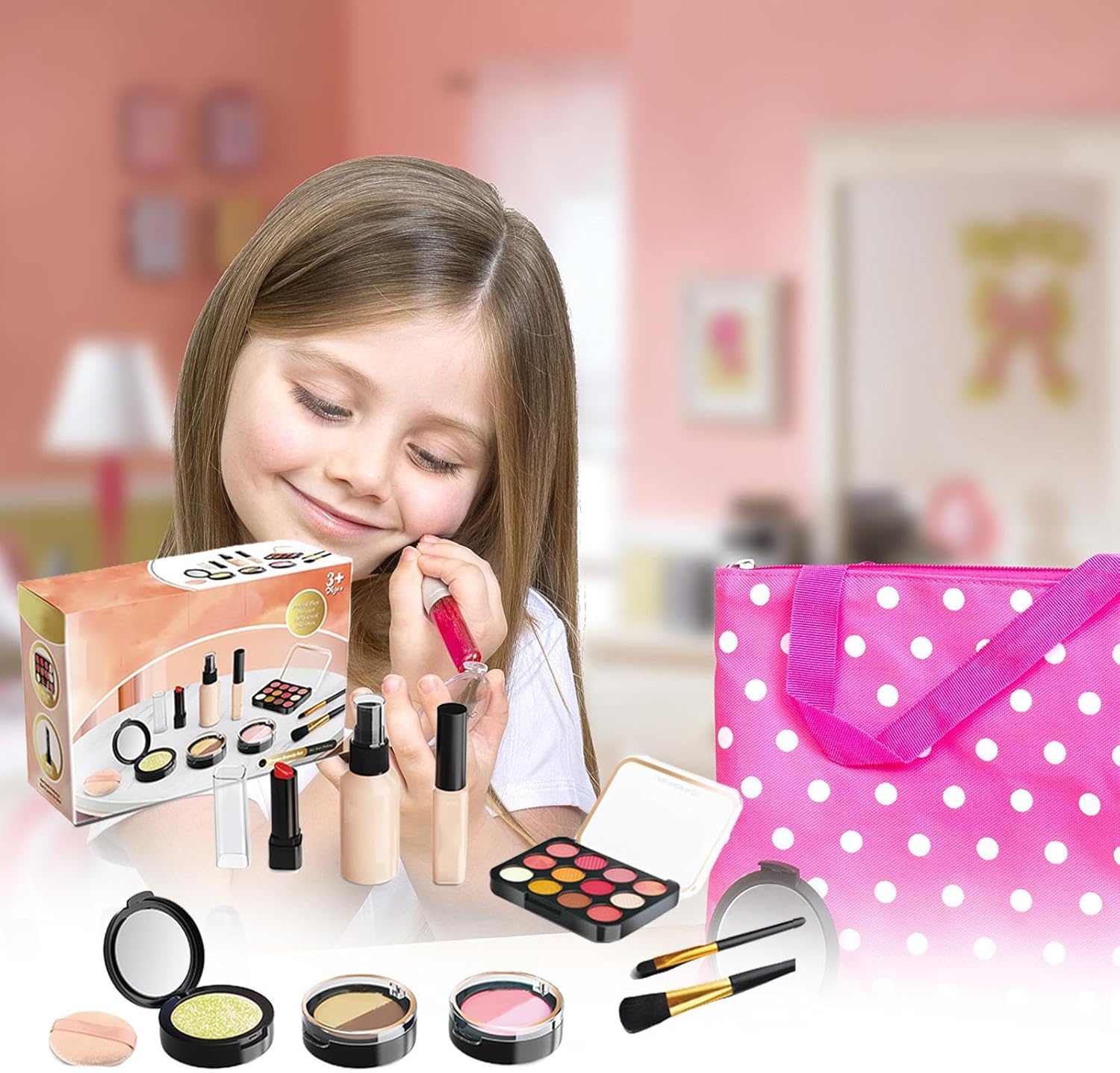 Immagina nuove possibilità: poiché ogni dettaglio, dal rossetto al fard, è realizzato con perizia, i giocattoli per il trucco finto presentano un design raffinato e realistico che imita i cosmetici veri, incoraggia l'immaginazione e garantisce un gioco sicuro mentre i bambini esplorano le funzioni di diversi prodotti di bellezza Un set di giocattoli per il trucco: include una selezione diversificata di ombretti, lucidalabbra e pennelli, consentendo ai bambini di personalizzarli secondo i loro gusti e creare stili di trucco unici ogni giorno, offrendo ai bambini opzioni più creative per l'espressione personale Lunga durata: i giocattoli per il trucco finto realizzati con materiali di alta qualità come silicone, ABS e schiuma EVA assicurano ore di gioco fantasioso per i bambini. Dalla creazione di look unici alla sperimentazione di texture diverse, le possibilità sono diverse per gli sviluppatori di abilità sociali: costruisci relazioni più forti con amici e familiari giocando con i giocattoli di trucco finto. Migliorare le capacità di comunicazione, condivisione e lavoro di squadra divertendosi e promuovendo lo sviluppo sociale. Bel regalo: perfetto per i giovani che vogliono interpretare il ruolo di un "truccatore". Questo set aiuta i bambini a esplorare la loro passione per la bellezza e la moda, offrendo ore di gioco fantasioso e realizzando fantastici regali che i bambini adoreranno