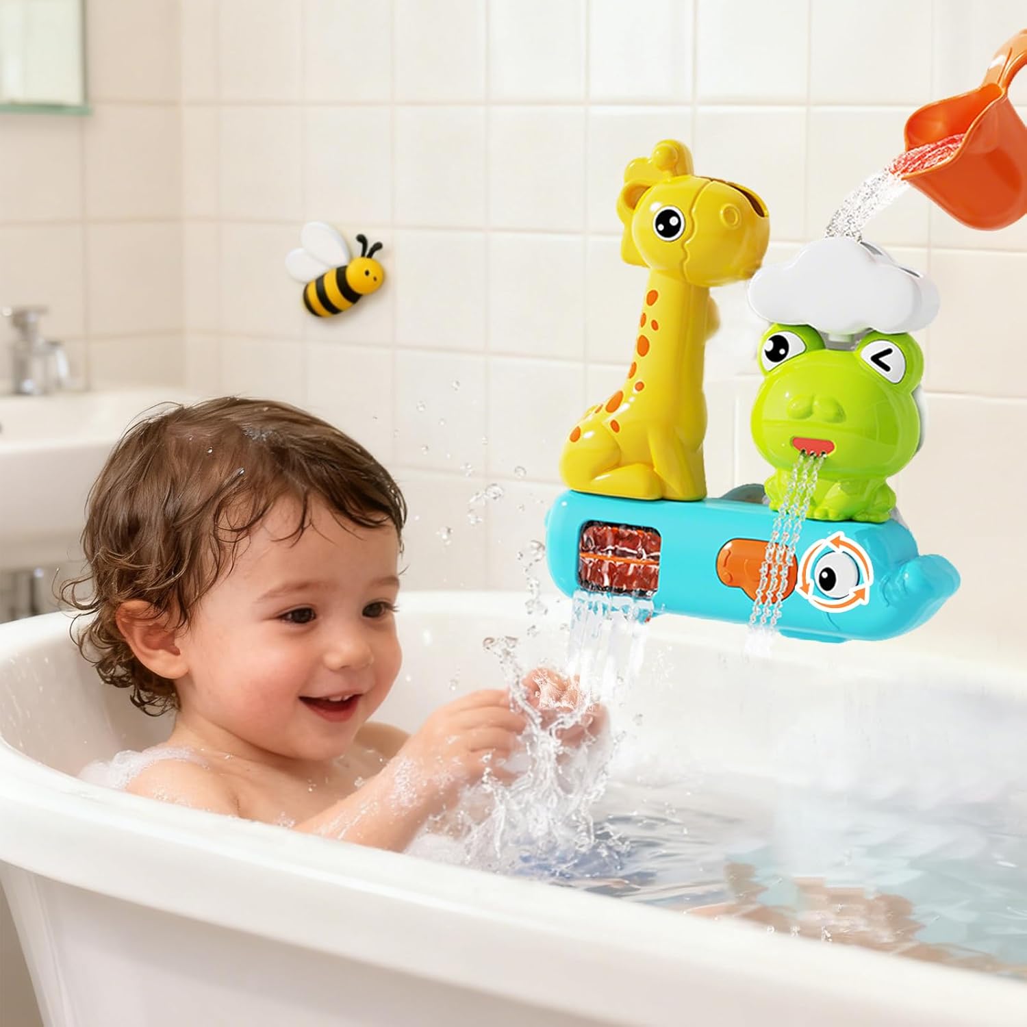 Giocattolo per vasca da bagno a partire dai 2 anni: riceverete un incantevole giocattolo per vasca da bagno, questo giocattolo da bagno per bambini mostra una combinazione di rane, elefanti e giraffe. Lasciate che il vostro bambino ama giocare e godersi il bagno. Materiali di alta qualità: questo giocattolo per vasca da bagno è realizzato in materiale ABS di alta qualità, robusto e durevole. È delicato sulla pelle e inodore, non si deforma e non sbiadisce, ha una superficie liscia e senza sbavature ed è facile da pulire. E offre sempre un'esperienza di gioco d'acqua confortevole e piacevole, che porterà al tuo bambino un divertimento duraturo. Godetevi il tempo del bagno: i nostri giocattoli da bagno per bambini sono stati progettati da esperti per lo sviluppo dei bambini, hanno colori vivaci e design carini. Se lasciate giocare il vostro bambino durante il bagno, può attirare l'attenzione del vostro bambino, godersi il tempo del bagno con molto divertimento e ridurre efficacemente il pianto del bambino. Facile da usare: questo giocattolo adatto per vasca da bagno a partire da 1 2 a 3 4 anni è facile da usare, il giocattolo per vasca da bagno ha una funzione di spruzzo d'acqua interattiva, che può trasformare il tempo del bagno in un'avventura emozionante. Lascia che il tuo bambino giochi e scateni a tuo piacimento! Adatto per molti scenari: questo giocattolo da bagno per bambini è piccolo e portatile. Può essere giocato non solo nella vasca da bagno, ma anche portato a terra. Il giocattolo da bagno per bambini combina divertimento e funzionalità ed è il regalo perfetto per un bambino che ama giocare sotto la doccia.