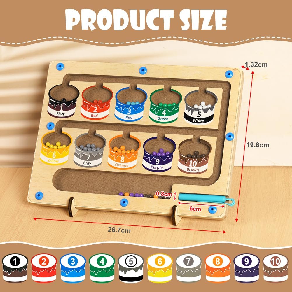 🔹【Conteggio magnetico】Le nostre lavagne magnetiche per il conteggio sono disponibili in 10 colori diversi per aiutare i bambini a entrare in contatto con numeri e colori. Questo giocattolo per contare incoraggia l'apprendimento e offre divertimento ai bambini, rendendolo la scelta perfetta per i bambini. 🔹【Giocattoli per la prima educazione】Utilizza la penna magnetica per spostare le perline e posizionarle nelle scanalature dei colori corrispondenti per eseguire il raggruppamento dei colori e il conteggio dei numeri, che è una bella sfida per il cervello dei bambini. Nota: tenere la penna in posizione verticale per un migliore utilizzo. 🔹【Giocattolo Creativo Educativo】Una tavola giocattolo creativa in legno che può aiutare il tuo bambino a sviluppare l'attenzione, la coordinazione occhio-mano, la discriminazione dei colori e il riconoscimento dei numeri, nonché le capacità motorie. Assicurati che i tuoi bambini si divertano per ore. 🔹【Costruzione robusta】Realizzata in legno duro e vernice a base d'acqua. La penna magnetica si trova sulla lavagna per riporla facilmente. È sicuro per i più piccoli e i pezzi non si perdono mai. 🔹【Regalo squisito】Giocattolo didattico magnetico per bambini di 3-5 anni, splendidamente confezionato, un regalo perfetto per i giovani studenti. Puoi regalarlo per compleanno, Natale, Capodanno o qualsiasi festa.