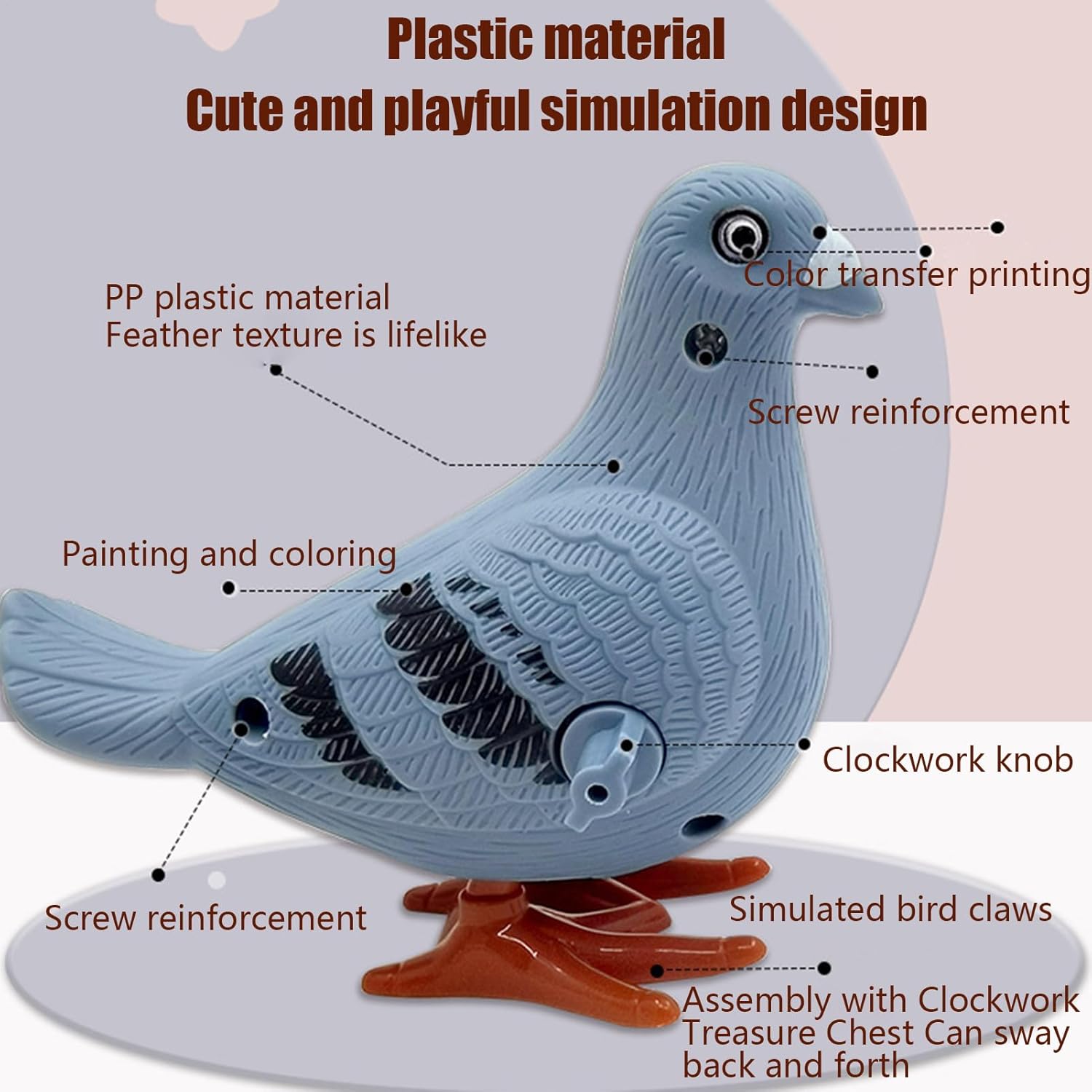 Attrazione realistica: il nostro giocattolo da rimontare imita perfettamente i dettagli di un piccione con texture di piume realistiche e superfici finemente lavorate. L'immagine complessiva è vivida e visivamente sorprendente, aggiungendo un tocco di natura ineguagliabile a qualsiasi collezione. Divertente e interattivo: con un meccanismo di orologeria, rimonta questo giocattolo ruotando il pulsante, e il piccione eseguirà una serie di azioni che aggiungono un elemento divertente e interattivo alla ricreazione. Goditi più divertimento con questo giocattolo innovativo Divertimento robusto per le età: giocattoli a forma di piccione che non si deformano facilmente, realizzati in un eccellente materiale ABS che garantisce sicurezza, ruggine e mantenimento della sua forma per una durata di gioco duratura. Divertenti per età, questi giocattoli ogni centesimo Facile da trasportare: dotato di un design leggero e portatile, questo giocattolo da caricare è facile da trasportare, permettendoti di goderti il divertimento di giocare in qualsiasi momento e in qualsiasi luogo, grazie alle sue dimensioni moderate adatte per l'intrattenimento all'aperto Design versatile: trasforma il tuo spazio abitativo con questo fantastico giocattolo a forma di piccione che funge da pezzo decorativo. Aggiunge un tocco di eleganza alla tua libreria e al davanzale, rendendolo un complemento perfetto per qualsiasi casa. Con la sua bellezza accattivante e la sua funzione decorativa, questo giocattolo è più di un semplice giocattolo, è una decorazione accattivante