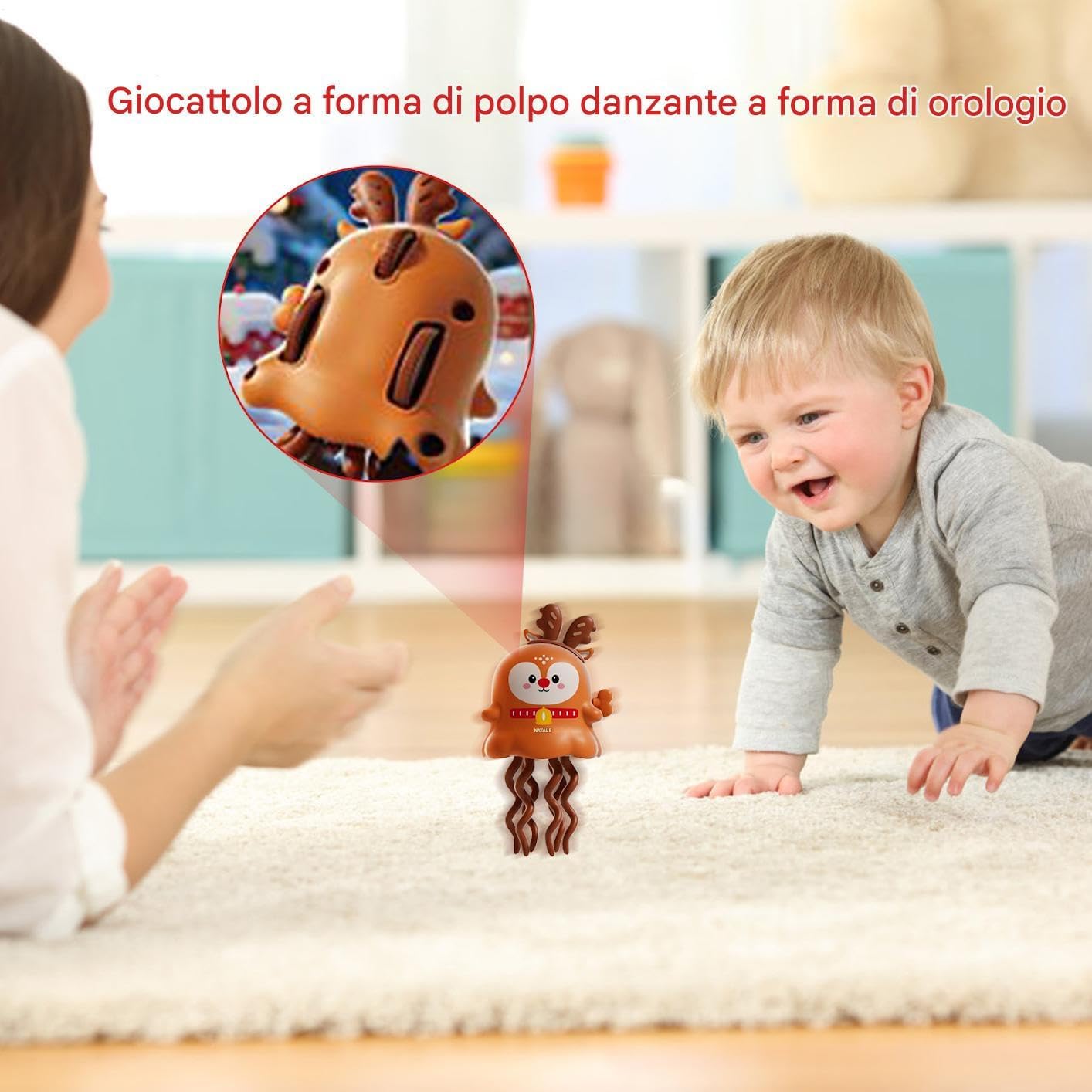 Guida al Movimento: Questo giocattolo elettrico piovra offre una guida intelligente per il movimento strisciante e aggira in autonomia gli ostacoli, stimolando il coinvolgimento dinamico e fungendo da strumento educativo per la prima infanzia con design sterzante flessibile Movimento Continuo: Il a ingranaggi innovativo assicura un funzionamento fluido e ininterrotto, mantenendo un design meccanico sicuro e una durata eccezionale per sessioni di gioco ripetitive senza bisogno di batterie Stimolazione Curiosità: Il giocattolo elettrico polpo coinvolge le menti giovani con il movimento animato dei tentacoli e un meccanismo a carica manuale, per esplorazione creativa e divertente che incoraggia l'apprendimento attraverso il gioco Pensiero Significativo: Realizzato con fascino natalizio, questo polpo giocattolo è per i bambini, un regalo dal valore affettivo per compleanni che rafforza legami familiari e amicizie Strumento Coinvolgimento Cognitivo: Potenzia l'educazione sensoriale integrando comprensione spaziale e movimenti coordinati in un'attività immersiva basata sul crawling, migliorando i risultati evolutivi con un approccio ludico ed efficace