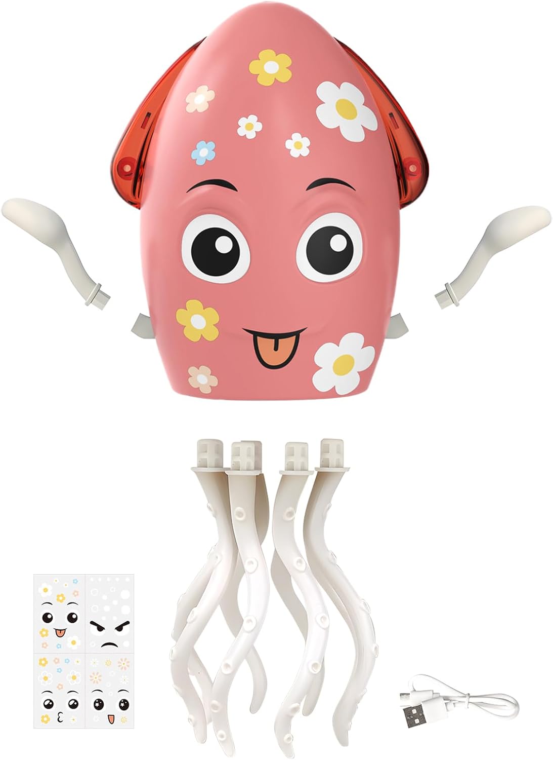 ABS Innocuo: Materiale ABS con bordi arrotondati, assenza di bave e manutenzione semplice. Garantisce sicurezza durante l'uso e longevità del giocattolo Scegli Espressioni: Regala sorrisi con gli adesivi facciali removibili che i bambini possono combinare liberamente, stimolando la creatività attraverso espressioni uniche del polpo per un gioco coinvolgente e ispiratore Design Ipnotico: Combinazione di movimenti di danza esagerati e dinamici crea performance irresistibili con tecnologia 3D di ultima generazione, superficie morbidissima promuove esperienze di gioco immersive e divertenti Sviluppa Competenze: Progettato per promuovere la coordinazione motoria e le abilità sociali, unisce la consapevolezza ritmica a un piacevole apprendimento linguistico, creando un'esperienza di gioco interattivo Esperienza Multisensoriale: Musica dinamica e luci LED colorate si combinano perfettamente, promuovendo la stimolazione sensoriale attraverso elementi uditivi e visivi durante il divertimento