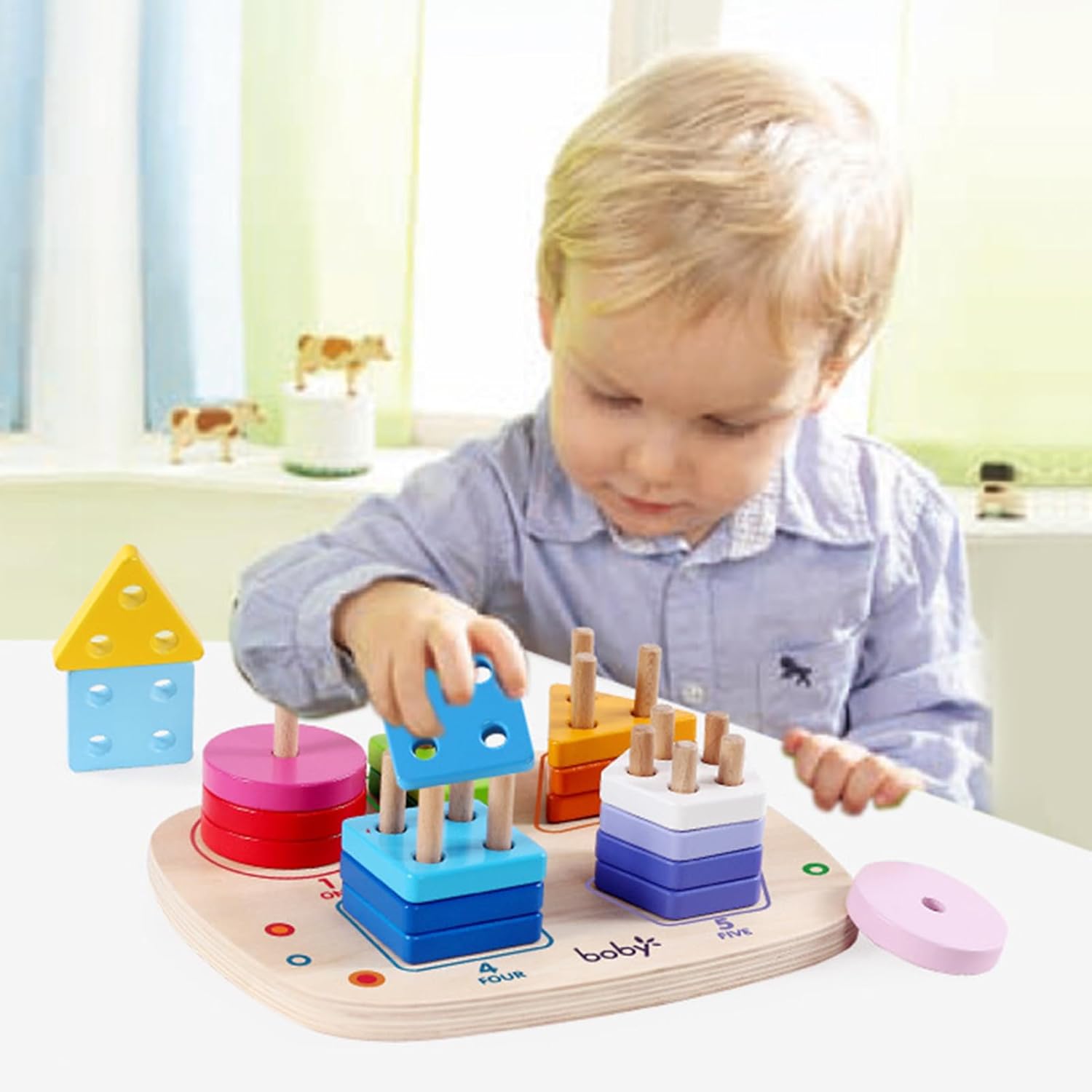 Apprendimento delle Forme Geometriche: I giocattoli di impilamento in legno introducono cerchi, quadrati e triangoli, aiutando i bambini a imparare le forme base mentre costruiscono consapevolezza spaziale, il che supporta le abilità logiche precoci. Ottimi per momenti educativi giocosi a casa o in ambienti prescolari, questi giocattoli educativi rendono l'apprendimento delle forme un'esperienza divertente e interattiva, favorendo la crescita intellettuale e la familiarità con le geometrie di ba Applicazione Vasta ed Efficace: I giocattoli di impilamento supportano fasi di sviluppo estese introducendo compiti variati con la maturazione del bambino, migliorando le abilità nel e favorendo un costante. Si dimostrano altamente in ambienti domestici, aule scolastiche e in asili o gruppi di gioco, per un coinvolgimento educativo duraturo e adatto a diverse situazioni di gioco. Migliora la Creatività: Progettato come strumento di apprendimento precoce per bambini dai tre anni in su, questo puzzle di impilamento in legno nutre la creatività e il pensiero critico mentre suscita interesse per i colori attraverso il gioco hands-on. Trasforma l'educazione in un'esperienza gioiosa e interattiva, supportando lo sviluppo delle abilità cognitive e la fantasia in modo equilibrato, per momenti di scoperta e divertimento in casa. Favorisce il Gioco di Abbinamento Forme: Progettato per le manine dei bambini, questo giocattolo in legno per l'ordinamento delle forme aiuta a sviluppare competenze essenziali come il controllo motorio fine e la risoluzione di problemi, ideale per contesti prescolari il gioco basato sulla curiosità incontra lo sviluppo delle abilità pratiche e cognitive. Materiale Legnoso Solido: Progettato con una struttura liscia e senza schegge, questo giocattolo impilabile utilizza legno naturale per creare un'esperienza di gioco sicura e inodore, eccellente per arricchire le abilità cognitive durante le sessioni di gioco familiare in ambienti interni. Il materiale solido assicura una lunga durata e supporta lo sviluppo mentale dei bambini attraverso il riconoscimento delle forme e attività pratiche, rendendolo per l'apprendimento domestico e il div
