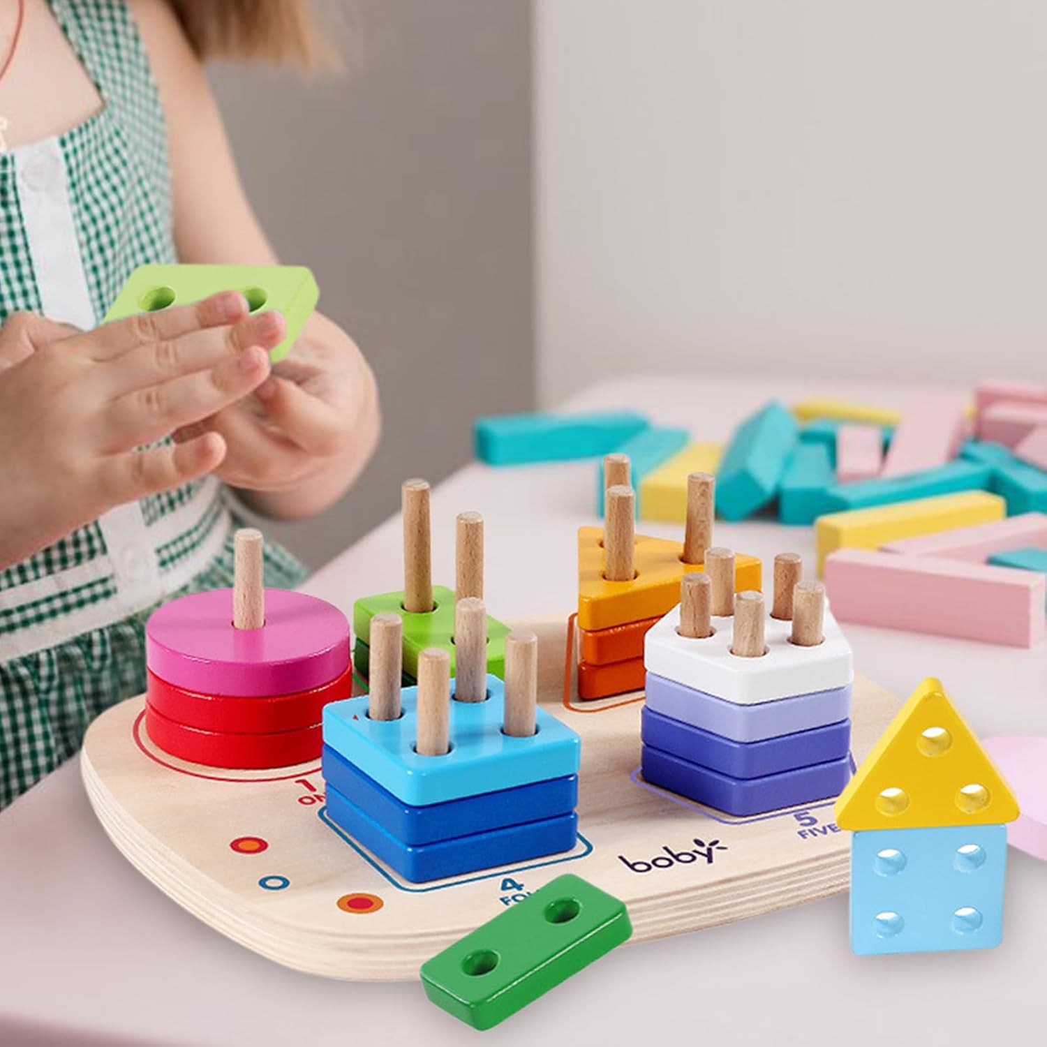 Potenziatori di Abilità Logiche Precoci: I giocattoli di impilamento in legno presentano cerchi, quadrati e triangoli, permettendo ai bambini di afferrare le forme base mentre migliorano la consapevolezza spaziale e supportano le abilità logiche iniziali. Progettati per ambienti di gioco arricchenti, questi strumenti educativi favoriscono lo sviluppo delle capacità logiche attraverso l'esplorazione pratica delle forme geometriche, rendendo ogni sessione di gioco un'opportunità per imparare e cre Ampia Applicazione Pratica: I giocattoli di impilamento in legno crescono con il bambino, incoraggiando lo sviluppo continuo di competenze essenziali come la risoluzione dei problemi e la coordinazione occhio-mano. Sono perfetti per casa, scuola o asilo , le attività di gruppo interattive sono promosse, supportando l'apprendimento divertente e lo sviluppo delle capacità in ambienti familiari ed educativi. Migliora la Creatività: Progettato come strumento di apprendimento precoce per bambini dai tre anni in su, questo puzzle di impilamento in legno nutre la creatività e il pensiero critico mentre suscita interesse per i colori attraverso il gioco hands-on. Trasforma l'educazione in un'esperienza gioiosa e interattiva, supportando lo sviluppo delle abilità cognitive e la fantasia in modo equilibrato, per momenti di scoperta e divertimento in casa. Migliora le Abilità Motorie: Il giocattolo per ordinare le forme in legno sviluppa le abilità motorie fini incoraggiando il bambino ad afferrare e posizionare i sui perni corretti, favorendo la coordinazione occhio-mano durante il gioco e supportando lo sviluppo precoce in un ambiente di apprendimento divertente e stimolante per i più piccoli. Materiale Legnoso Resistente: Realizzato in legno naturale, questo giocattolo impilabile offre un design sicuro e inodore che garantisce durabilità e pace mentale per i genitori, mentre i bambini piccoli godono di un gioco educativo in vari ambienti di apprendimento come asili e scuole. La costruzione resistente previene e supporta le attività sensoriali e cognitive, con una finitura liscia che migliora la sicurezza durante il gioco pratico e interattivo.