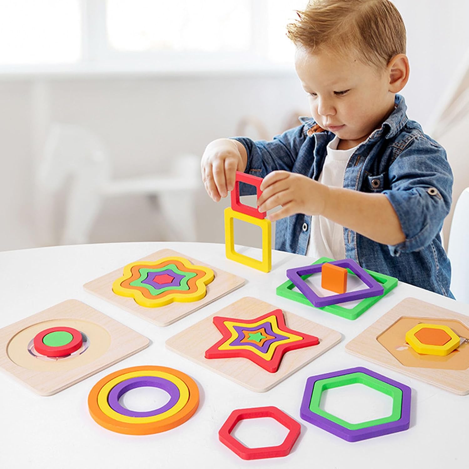 [Apprendimento vibrante] Il kit include 6 diverse forme in colori vivaci, migliorando la percezione del colore e le capacità di osservazione per i bambini piccoli. [Coordinamento potenziato] Migliora il coordinamento e la destrezza mentre i bambini mettono insieme forme, preparandole per compiti più complessi con questo giocattolo in legno. [Divertimento per la risoluzione dei problemi] promuove le capacità di risoluzione dei problemi, lo sviluppo cognitivo e l'apprendimento attraverso la ripetizione e l'osservazione, rendendo l'istruzione divertente per i bambini. [Promuove il legame familiare] incoraggia l'interazione genitore-figlio attraverso il gioco condiviso, rafforzando le relazioni e creando esperienze collaborative a casa e in età prescolare. [Sicuro e durevole] realizzato in legno di basso, fornendo un'opzione per neonati e bambini, con una costruzione robusta per il tempo di gioco di lunga durata.