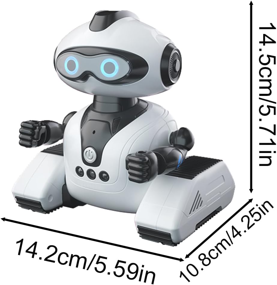 Rotazione di 360 gradi: migliora il tempo di gioco del tuo bambino con il nostro robot telecomandato per, dotato di occhi LED scorrevoli sinistro e destro, bracci flessibili, rotazione di 360 gradi, binari del serbatoio inferiori e la capacità di assumere pose diverse. Nuovo compagno educativo: questo robot telecomandato può fare molto di più che ballare e cantare, può anche raccontare storie scientifiche, ripetere parole ed eseguire compiti semplici. Metodi di controllo flessibili: integrando tocco, gesti e telecomandi, il giocattolo robotico è facile da manovrare senza sforzo. Possono guardarlo muoversi con un tocco della testa o usare i gesti per controllare i suoi movimenti. Tempo di riproduzione prolungato per divertimento: con soli 50 minuti di ricarica, goditi 45 minuti di utilizzo; basta collegarlo a un caricabatterie, un laptop o un'altra fonte di alimentazione con la batteria ricaricabile integrata Giocattolo interattivo per tutta la famiglia: con la sua capacità di ballare, cantare e battere le palpebre, il nostro robot telecomandato offre momenti altamente interattivi che sicuramente delizieranno. Goditi del tempo di qualità in famiglia come prima