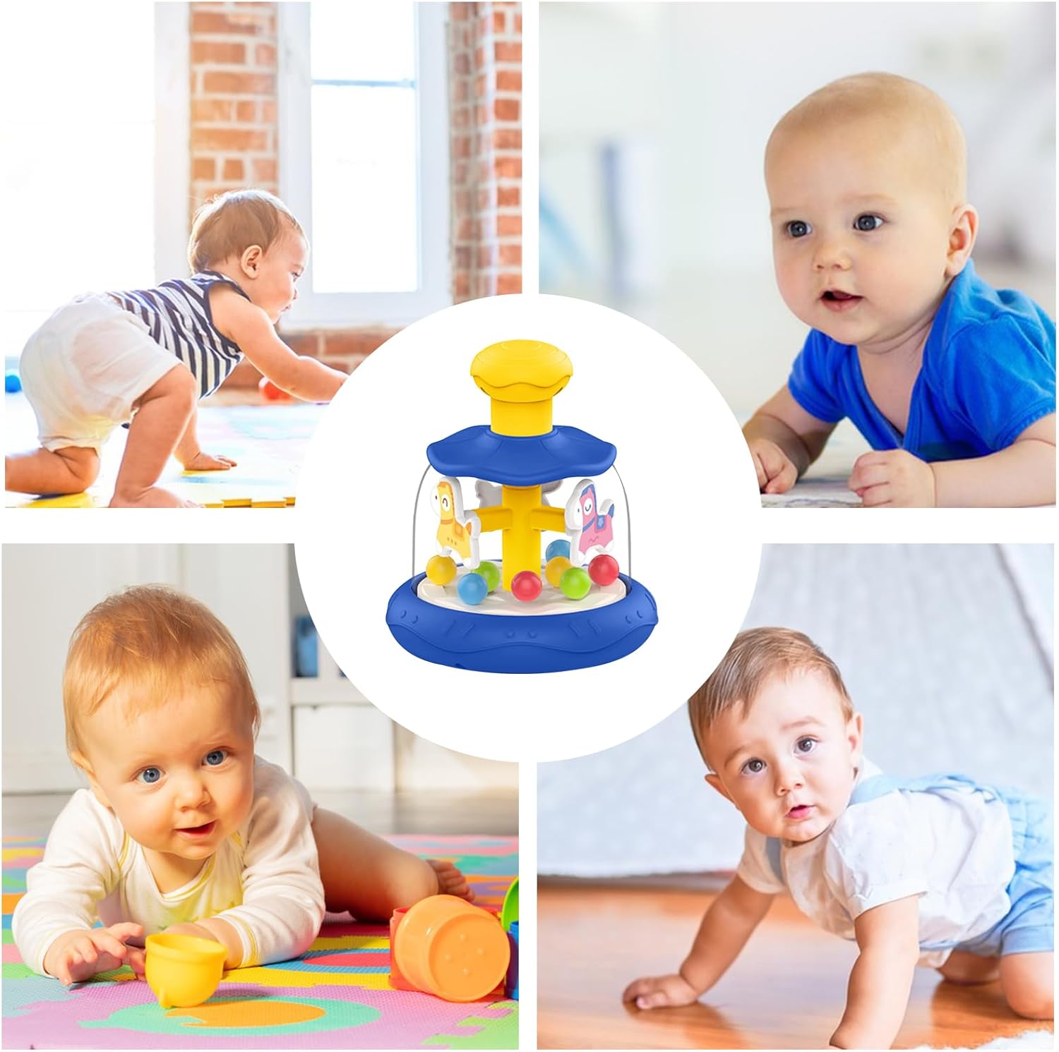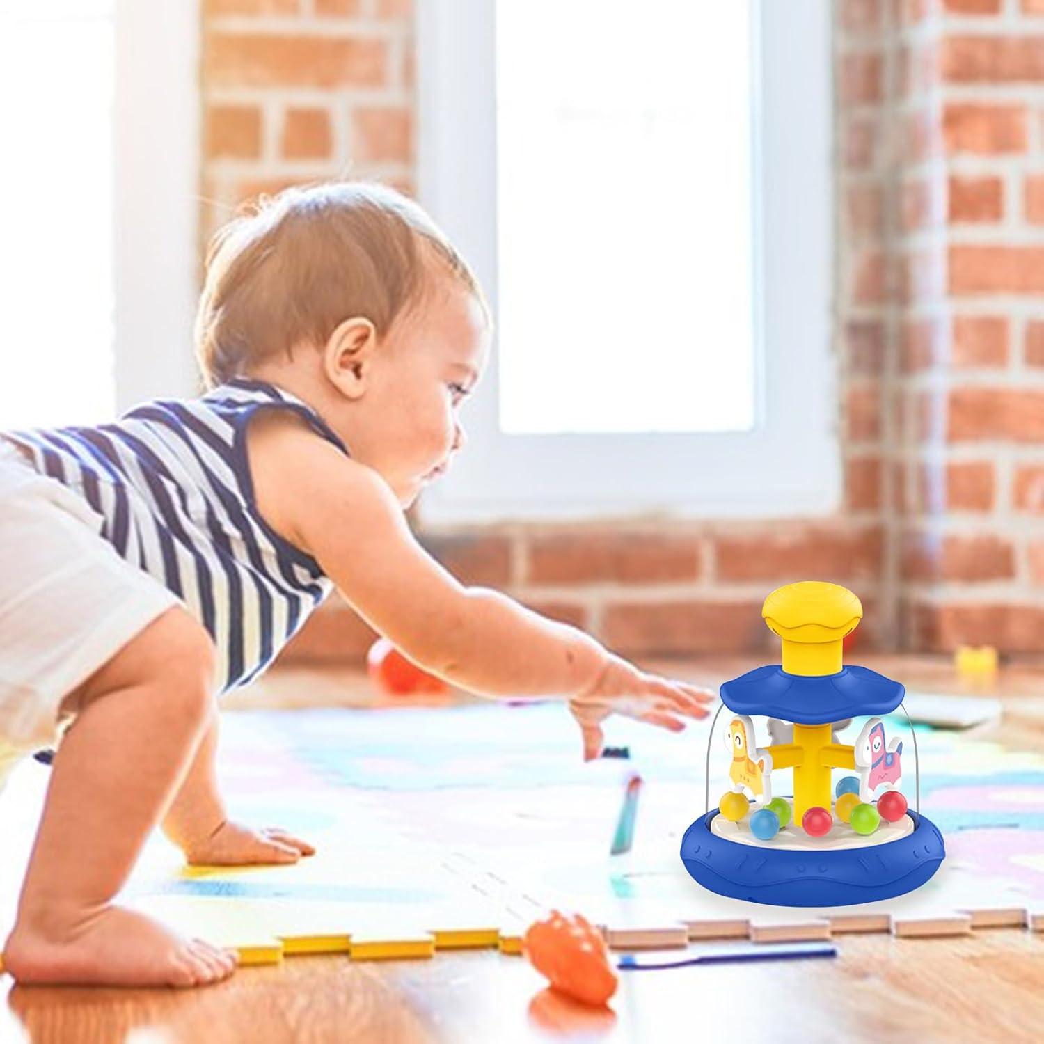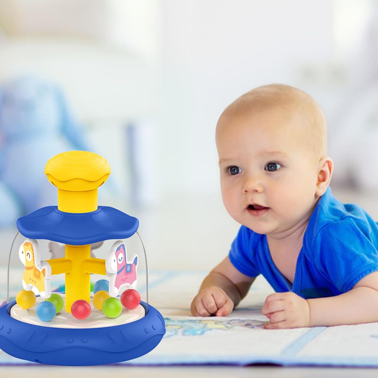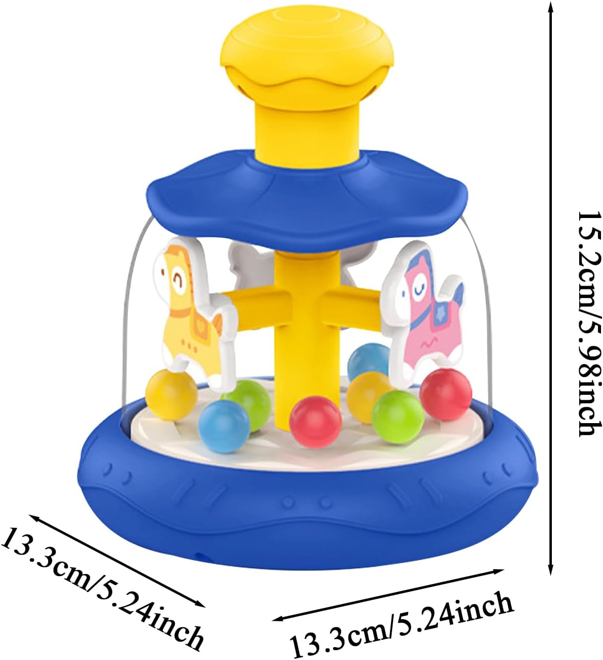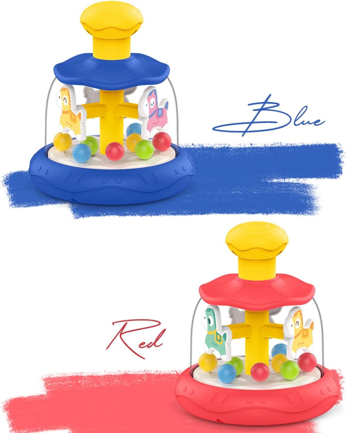 Miglioramento del gioco interattivo: utilizzando un adorabile design di cavallo di legno e un meccanismo creativo a carosello, il nostro giocattolo stimola l'immaginazione e la curiosità di figlio. Premendo la testa, guarda sia la pallina che la giostra ruotare simultaneamente, creando un'esperienza di gioco coinvolgente e stimolante Promuove la crescita cognitiva: con il giocattolo Press Carousel, figlio imparerà a migliorare le proprie capacità cognitive in modo naturale. Il meccanismo di rotazione e movimento attira la loro attenzione, li aiuta a concentrarsi durante il gioco e coltiva una maggiore concentrazione, strumento necessario per futuri successi accademici Booster di sviluppo: aumenta lo sviluppo Migliora le capacità motorie, la coordinazione e lo sviluppo dei bambini con il giocattolo interattivo Press Carousel. Quando si preme la testa del cavallo, la giostra ruota e la palla rimbalza automaticamente, favorendo la coordinazione occhio-mano e migliorando le capacità motorie. Utilizzo duraturo: realizzato con materiale ABS selezionato, questo giocattolo a carosello è robusto e garantisce durata e sicurezza grazie alle sue superfici lisce ed ecologiche Migliora le capacità sensoriali: il nostro giocattolo a carosello della stampa delizia il bambino con il suo adorabile design a cartone animato e gli effetti colorati, fornendo stesso stimolazione multisensoriale per promuovere lo sviluppo cognitivo. I suoi colori ricchi e i motivi dinamici aiutano a sviluppare la capacità di percezione del colore