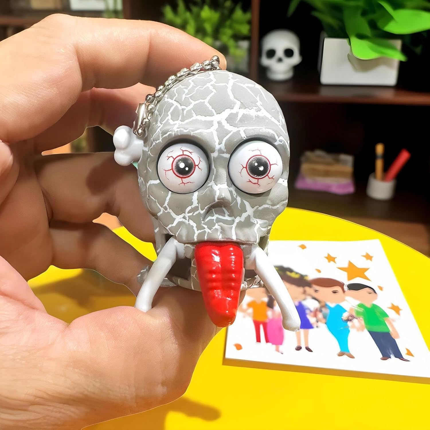 Adattabilità Completa:Svolge il doppio ruolo di accessorio per zaino, ricordo da scrivania o ornamento per chiavi, dona fascino funzionale e piacevole versatilità per tutte le fasce d'età con design sempre accattivante. Intrattenimento Scherzoso: Scheletrino carica per scherzi: cammina in modo buffo quando caricato. Il movimento unico e l'appeal spensierato catturano bambini e adulti con divertimento coinvolgente. Qualità Superiore: Progettato con materiali perfetti, garantisce lunga durata e tollera perfettamente manipolazioni ripetute senza deteriorarsi Testa Realistica: Teschio con lingua inquietante e dettagli spaventosi, per eventi a tema. Caratteristiche realistiche catturano l'attenzione come decorazione o giocattolo da collezione. Risate Garantite: Porta allegria in famiglia e tra amici con questo scheletro giocattolo a carica manuale, ideale che stimola momenti di spensieratezza con il suo meccanismo divertente e sorprendente