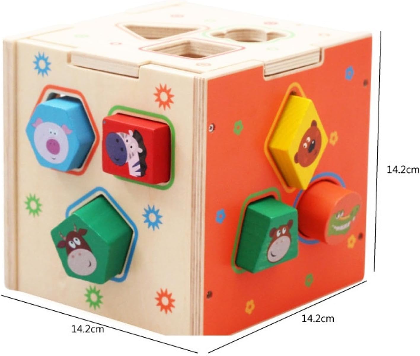 【Materiale】: realizzato in legno, questo giocattolo educativo è durevole e rende i bambini desiderosi di imparare. Regalo: scatola dei giocattoli a forma di cubo di smistamento, classico giocattolo in legno per bambini, regalo per ragazze e ragazzi. Design a cartoni animati: con un adorabile design a cartoni animati, questa scatola dell'intelligenza attira l'attenzione dei bambini e la rende un'esperienza divertente. 【Divertimento per l'apprendimento】 Questo giocattolo di abbinamento di forme geometriche aiuta a sviluppare le capacità cognitive nei bambini promuovendo il riconoscimento della forma, la coordinazione occhio-mano e le capacità di risoluzione dei problemi attraverso il gioco interattivo. 【Dimensioni compatte】: con dimensioni di 5,59 pollici x 5,59 pollici x 5,59 pollici, questo cubo didattico in legno è progettato per essere facilmente maneggiato da mani piccole pur essendo abbastanza compatto per essere riposto comodamente.