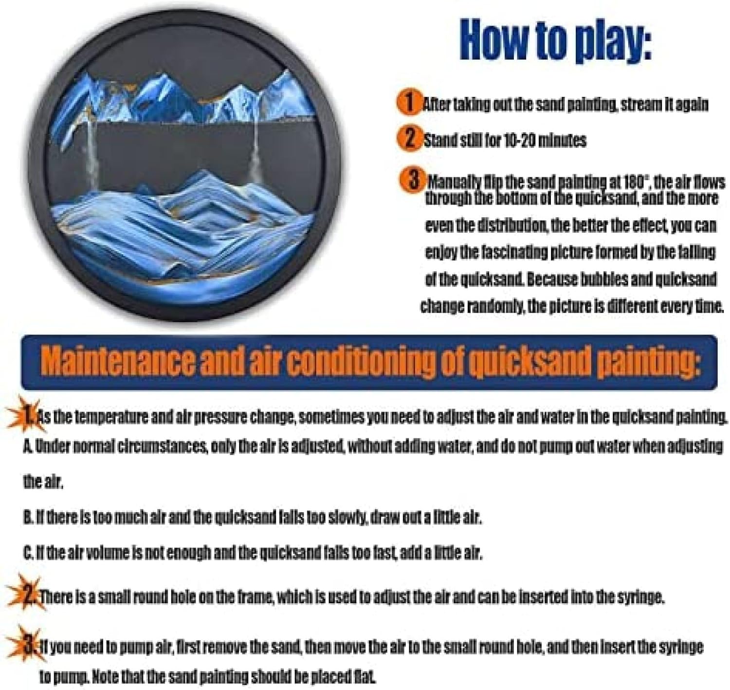 Scopri i benefici lenitivi dell'arte della sabbia, progettata per ridurre lo stress, rilassare gli occhi e migliorare la pazienza. Ogni flip rivela un dipinto unico che stimola l'intelligenza all'interno di una cornice in vetro trasparente. Interagisci con un'arte della sabbia dinamica che si trasforma in paesaggi affascinanti ad ogni turno. Guarda come la sabbia scende attraverso le bolle d'aria, creando scene dalle dune alle montagne, aggiungendo gioia a qualsiasi spazio. Questo pezzo artistico 3D con sabbia a movimento liquido da 43,9 cm è perfetto sia per la casa che per l'ufficio. Viene fornito accuratamente confezionato per garantire la sicurezza. In caso di problemi, il nostro team di assistenza clienti è pronto ad assistere. Goditi l'infinita varietà di scene con ogni flip dei nostri dipinti di sabbia. Colori vivaci e un design moderno si uniscono per produrre uno straordinario effetto 3D, mostrando colori fluidi con dettagli squisiti. Osserva le intriganti meccaniche dell'arte della sabbia mentre capovolgi la cornice, guardando la sabbia depositarsi e le bolle salire. Sperimenta formazioni come montagne e valli, offrendo un modo unico per alleviare lo stress e l'affaticamento degli occhi.