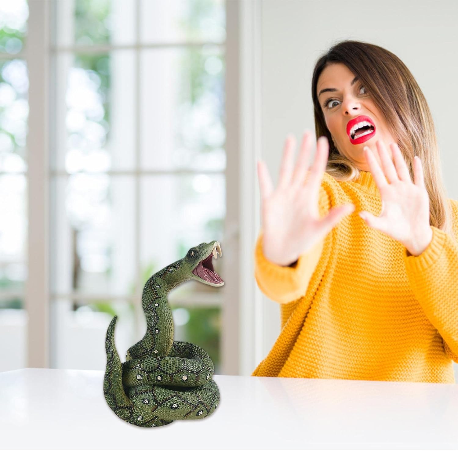 Materiale selezionato: l'uso di PVC morbido garantisce la sicurezza mantenendo un aspetto realistico per una soddisfazione di gioco realistica con questo giocattolo serpente di alta qualità Realizzato con perizia: con un'attenta attenzione ai dettagli, questo giocattolo serpente realistico è un capolavoro di eccellente maestria e design elaborato, che mostra una lavorazione squisita per aggiungere fascino realistico alla tua collezione. Aggiunta versatile: questo realistico giocattolo a forma di serpente è un must per gli scherzi in ogni occasione. Perfetto per Halloween, feste in maschera e può essere utilizzato anche per il primo di aprile. Ampiamente usato e aggiungerà sicuramente divertimento a qualsiasi evento. Regalo pratico: fai un regalo divertente con questo realistico giocattolo serpente, ideale per compleanni, Ringraziamento o regali di Natale. Perfetto per bambini e adulti, questo giocattolo offrirà intrattenimento e risate Divertimento realistico: posizionalo su un tavolo, mettilo sul pavimento o nascondilo in un cassetto, ingannalo in una scatola o nascondilo nella scatola; Prank Toys ti offre una nuova esperienza horror, come un vero serpente