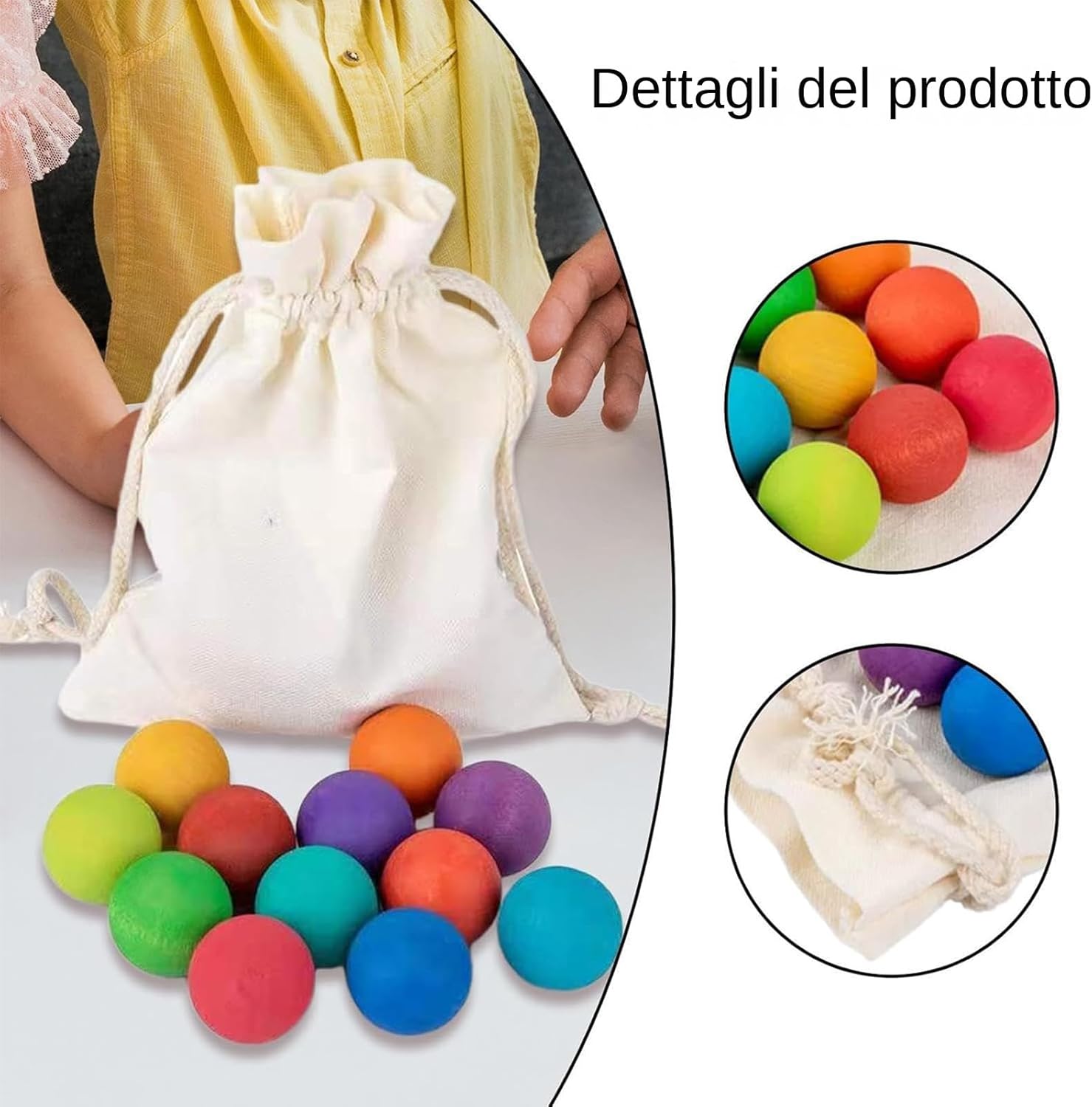Sviluppo Competenze Guidato: Le palline colorate potenziano abilità cognitive e motorie con attività di abbinamento cromatico e conteggio in formato puzzle, rendendo l'apprendimento naturale Allenamento Cognitivo: Per bimbi oltre 1 anno, la palla arcobaleno in legno potenzia destrezza e capacità di problem-solving garantendo momenti di gioco arricchenti con design versatile. Giochi Diversificati: I bambini possono esplorare vari modi di giocare con la pallina arcobaleno di legno, stimolando immaginazione e creatività attraverso attività manuali che li intrattengono per ore Facile trasporto: Progettato per la portabilità, l'arcobaleno a palla in legno include una pratica sacca che semplifica il trasporto e lo stoccaggio, offrendo un'esperienza senza interruzioni per stili di vita attivi Materiale Sicuro: Realizzato in legno di alta qualità con superficie finemente levigata per garantire sicurezza e affidabilità, offre una texture piacevole al e un design studiato per durabilità e appeal estetico senza compromessi