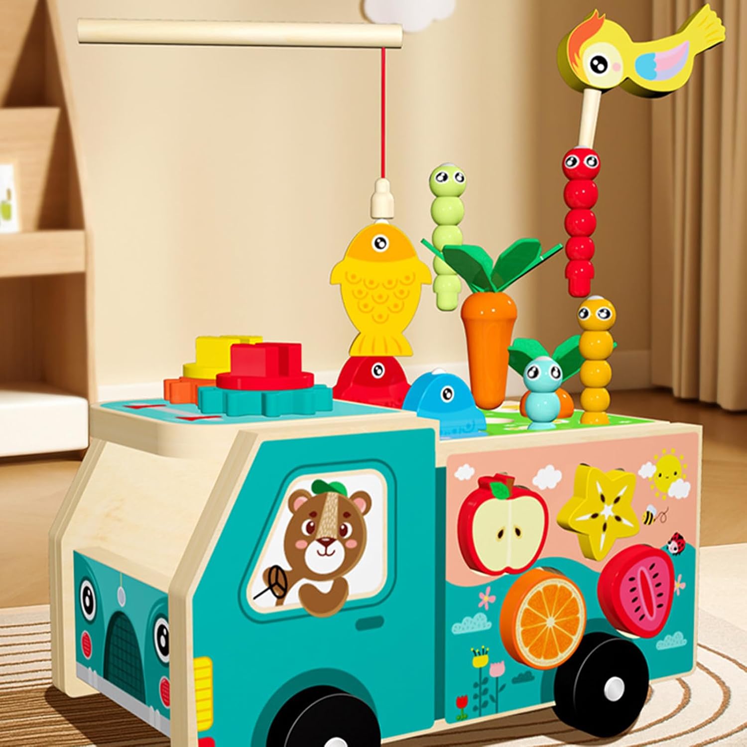 Momenti Condivisi: Unisce i temi della fattoria e della frutta per ispirare il attraverso il gioco interattivo, aiuta a sviluppare abilità sociali fondamentali mentre funziona come regalo per il primo compleanno, migliorando i momenti condivisi in riunioni o celebrazioni. Superfici Lisce e Sicure: I bordi arrotondati levigati dello shape sorter superfici lisce e sicure per i bambini, riducendo il rischio di o ferite durante il gioco e promuovendo l'esplorazione sicura in qualsiasi ambiente domestico Gioco Interattivo Attrazione-Abbinamento: Progettato per stimolare l'interazione tramite attrazione e abbinamento, aiuta a costruire abilità motorie fini, rafforza la presa delle dita e supporta la coordinazione occhio-mano, offrendo un modo divertente di sviluppare competenze durante il gioco strutturato o libero Adattamento sviluppo: Offre modalità di gioco versatili come l'abbinamento di forme e le attività di presa che evolvono con la crescita del bambino, stimolando focus e engagement durante il gioco attivo indoor o outdoor Compagno Educativo Precoce: Con i suoi colori vivaci e ad alta saturazione, questo giocattolo assortitore forme stimola il riconoscimento cromatico e l'apprendimento di base associando le tonalità ad oggetti familiari, ideale per coinvolgere le giovani menti in un'attività di gioco istruttiva e divertente