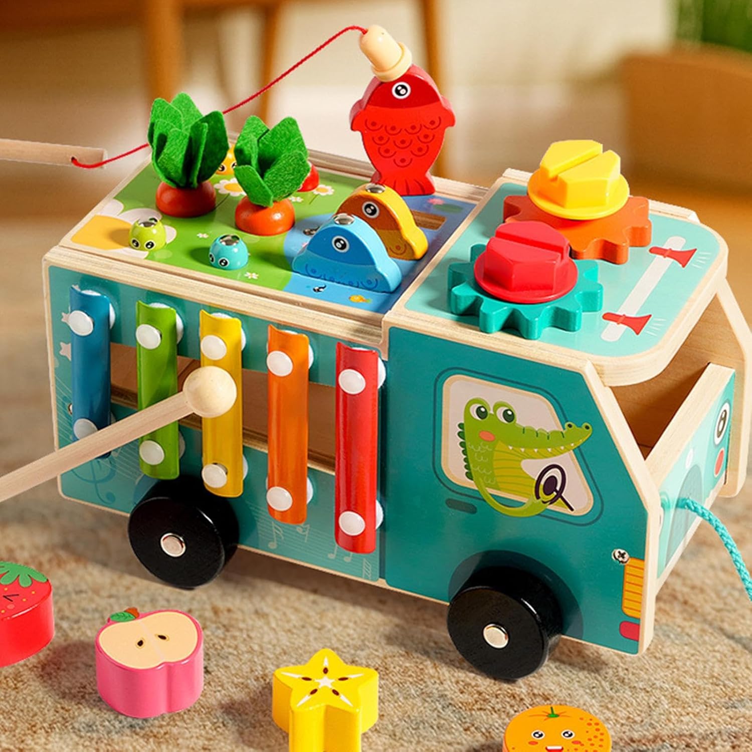 Regalo Ideale: Questo giocattolo delle forme con i suoi temi incantevoli della fattoria e della frutta promuove il e lo sviluppo delle abilità sociali, offrendo un modo delizioso per celebrare traguardi come il primo compleanno del bambino, creando esperienze memorabili durante feste e ricorrenze speciali. Protezione Morbida ai Bordi: I bordi arrotondati levigati dello shape sorter garantiscono un contatto delicato durante l'uso, minimizzando i rischi di incidenti e supportando un gioco ininterrotto per i bambini che esplorano forme e pattern in sicurezza a casa Gioco Interattivo Attrazione-Abbinamento: Progettato per stimolare l'interazione tramite attrazione e abbinamento, aiuta a costruire abilità motorie fini, rafforza la presa delle dita e supporta la coordinazione occhio-mano, offrendo un modo divertente di sviluppare competenze durante il gioco strutturato o libero Adattamento sviluppo: Offre modalità di gioco versatili come l'abbinamento di forme e le attività di presa che evolvono con la crescita del bambino, stimolando focus e engagement durante il gioco attivo indoor o outdoor Strumento Sviluppo Cognitivo: Utilizza colori vivaci e saturi per insegnare le tonalità primarie, incoraggiando i bambini ad abbinare e identificare i colori con oggetti del mondo reale, creando un'esperienza di apprendimento dinamica e piacevole a casa o all'asilo