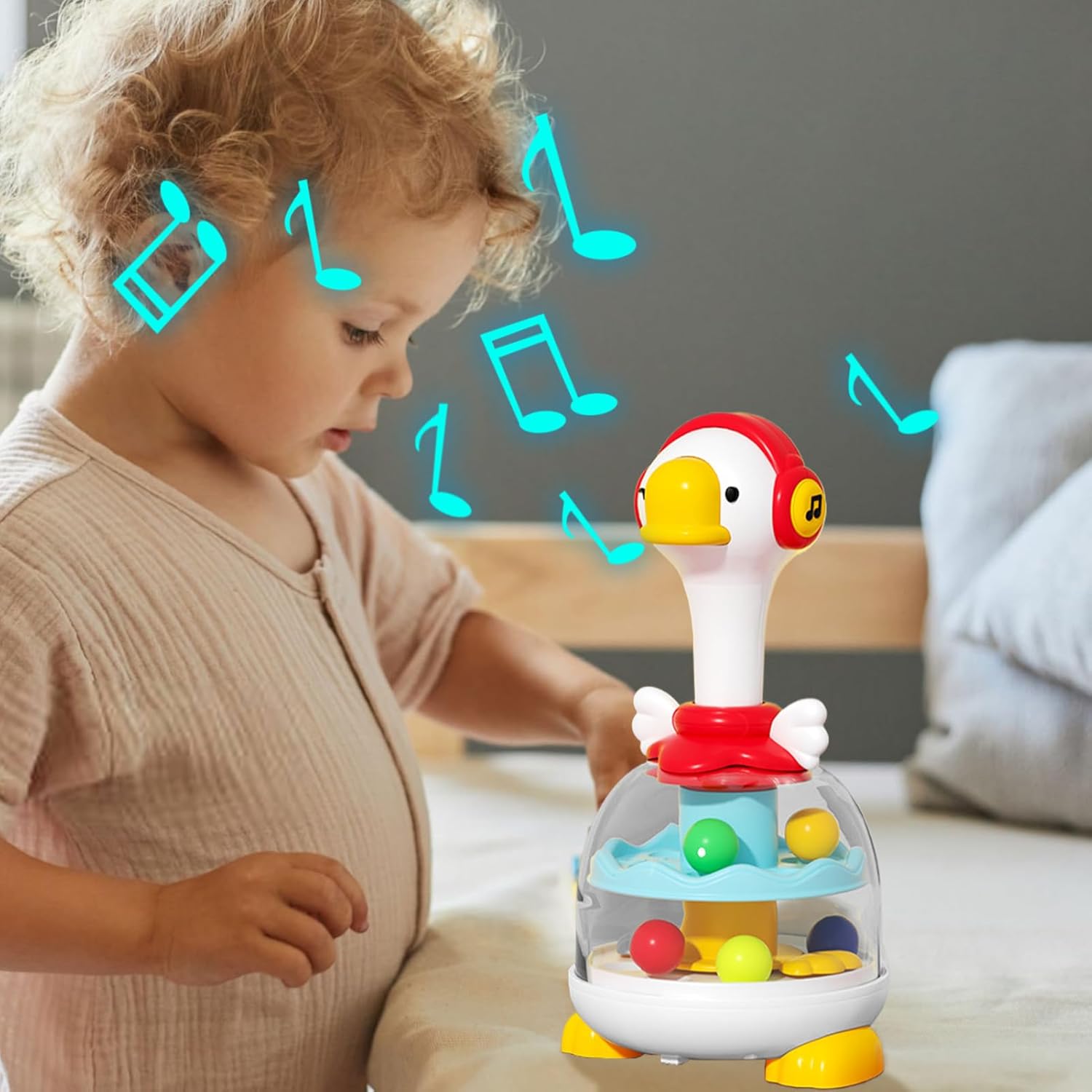 Gioco divertente e interattivo: i nostri giocattoli di pressione e rotazione sono dotati di un meccanismo di rimbalzo unico che attiva la rotazione istantanea del giradischi e il salto della palla ogni volta che si preme verso il basso, offrendo intrattenimento ed eccitazione senza fine. Giocattolo audiovisivo adatto ai bambini: i nostri giocattoli pressa e rotazione sono progettati con un accurato controllo del volume ed effetti di luce soffusa per creare un'esperienza audiovisiva sicura, stimolando lo sviluppo sensoriale precoce. Tranquillità dei genitori: goditi un momento di gioco sicuro poiché i nostri giocattoli pressa e rotazione sono realizzati con materiali sicuri e inodore, angoli arrotondati e garanzia di innocuità. Con questi giocattoli potrai rilassarti e stare tranquillo mentre i tuoi bambini giocano. Stimola la curiosità e l'abilità pratica: anche i bambini possono facilmente padroneggiarlo, promuovendo lo sviluppo della coordinazione occhio-mano attraverso la pressione e l'osservazione, mentre l'uso semplice e intuitivo stimola di esplorazione e capacità cognitiva del bambino. Durevolezza di lunga durata: un amico eccezionale nel viaggio verso la crescita di figlio, con robusto materiale ABS per resistere a un uso frequente e accompagnare ogni momento felice.