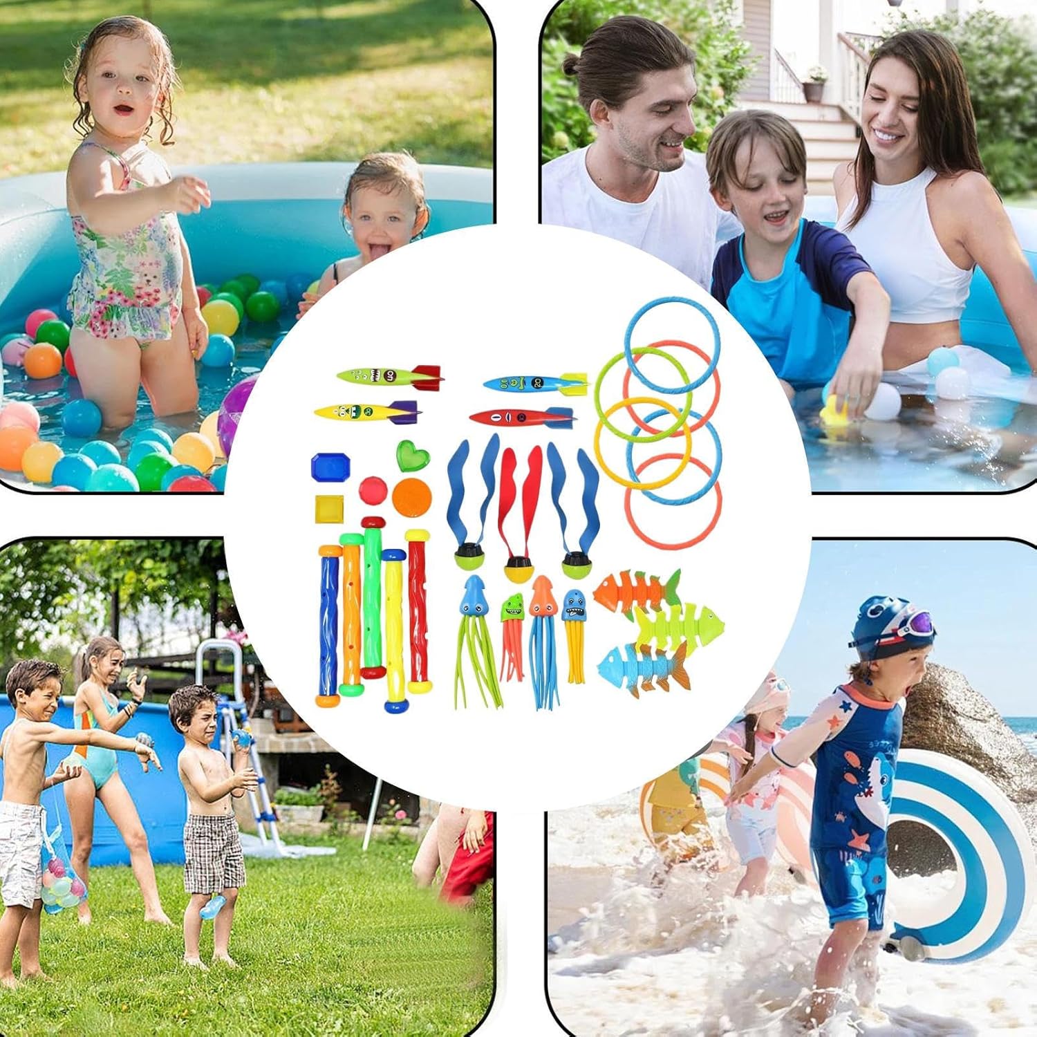 Divertimento di gioco interattivo: goditi un divertimento di gioco rafforzato con giocattoli che migliorano la coordinazione motoria e le abilità di segnalare mentre vivi un gioco subacqueo immersivo Promuovere la cooperazione: consente un'esperienza familiare della comunità attraverso giochi d'acqua guidati e lavoro di squadra per rafforzare i legami emotivi Versatilità pratica: progettati per una facile maneggevolezza e adattabilità, questi giocattoli da immersione offrono opzioni di gioco dinamiche. Garantiscono un divertimento di gioco duraturo in piscine, spiagge o stabilimenti balneari e offrono un rinfrescante piacere d'acqua grazie a possibilità di utilizzo flessibili. Divertimento marino interattivo: i colori vivaci e gli adorabili animali acquatici attirano l'attenzione. Questi giocattoli per immersioni creano accattivanti attività subacquee con valore di gioco e attrazione visiva. Scoperta guidata dalla curiosità: incoraggia l'esplorazione fantasiosa con 30 pezzi versatili che combinano avventure oceaniche con gioco d'acqua multifunzionale per un'esperienza accattivante