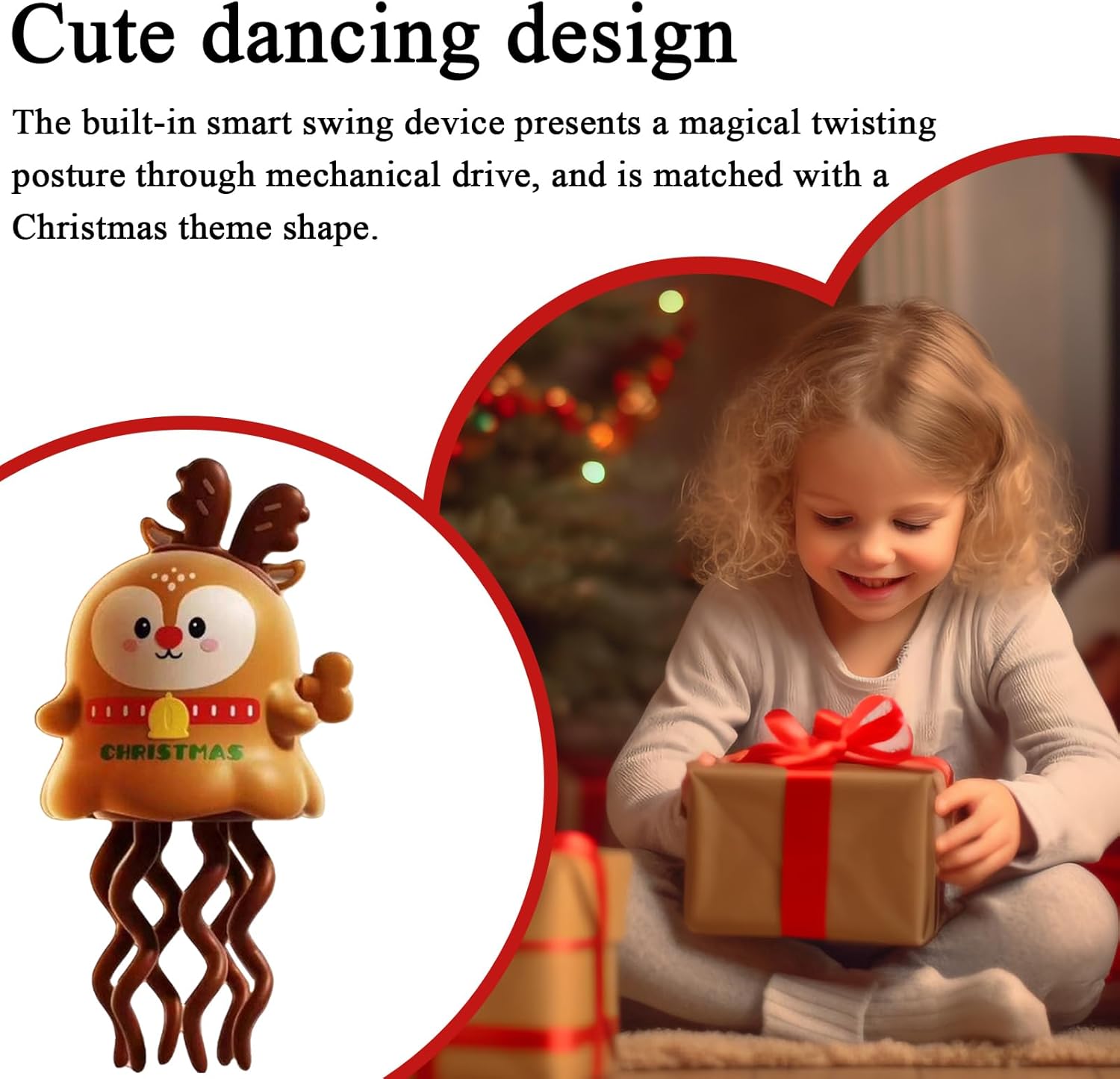 Fascino Festivo: L'aspetto da Santa e renna unito a colori vivaci garantisce che questo giocattolo sia sia una decorazione graziosa sia un modo delizioso per abbracciare la creatività natalizia, aggiungendo allegria a qualsiasi ambiente domestico Sviluppatore abilità infantili: Questo giocattolo interattivo promuove le capacità di tracciamento visivo, incoraggia la coordinazione occhio-mano e aumenta la concentrazione dei bambini attraverso movimenti danzanti piacevoli per la crescita dello sviluppo precoce Azione Meccanica : Goditi 8–10 secondi di danza ipnotica senza bisogno di batterie, alimentato da una meccanica a torsione e un meccanismo a carica manuale per un divertimento senza limiti Divertimento Sicuro: Grazie ai sensori a infrarossi avanzati e al cambio di direzione automatico, il giocattolo calamara offre un gioco senza preoccupazioni per i bambini, evitando intelligentemente gli ostacoli e garantendo la massima sicurezza durante l utilizzo Design dinamico: Il giocattolo presenta un movimento oscillante divertente che crea momenti gioiosi alle feste festive e porta le risate familiari in vita con il suo design coinvolgente e intrattenimento unico