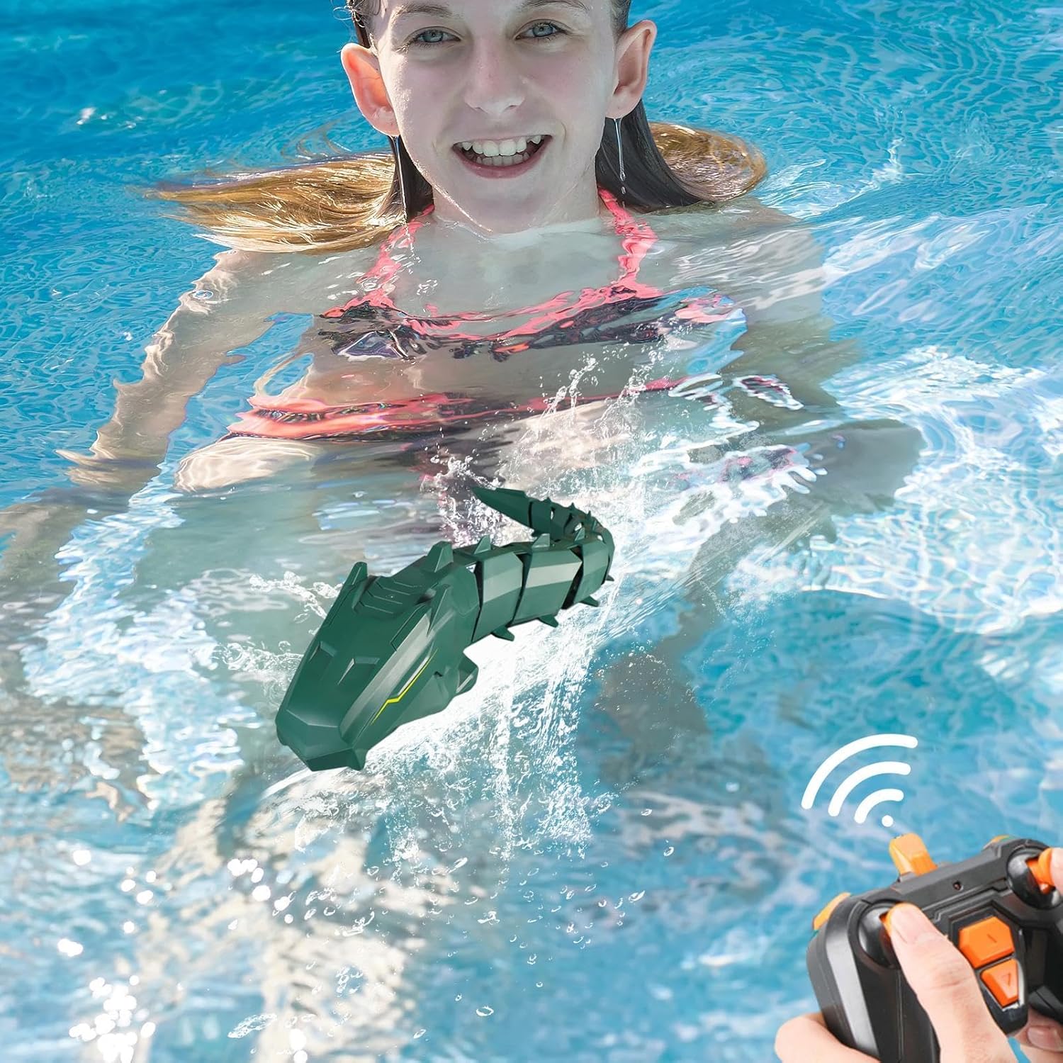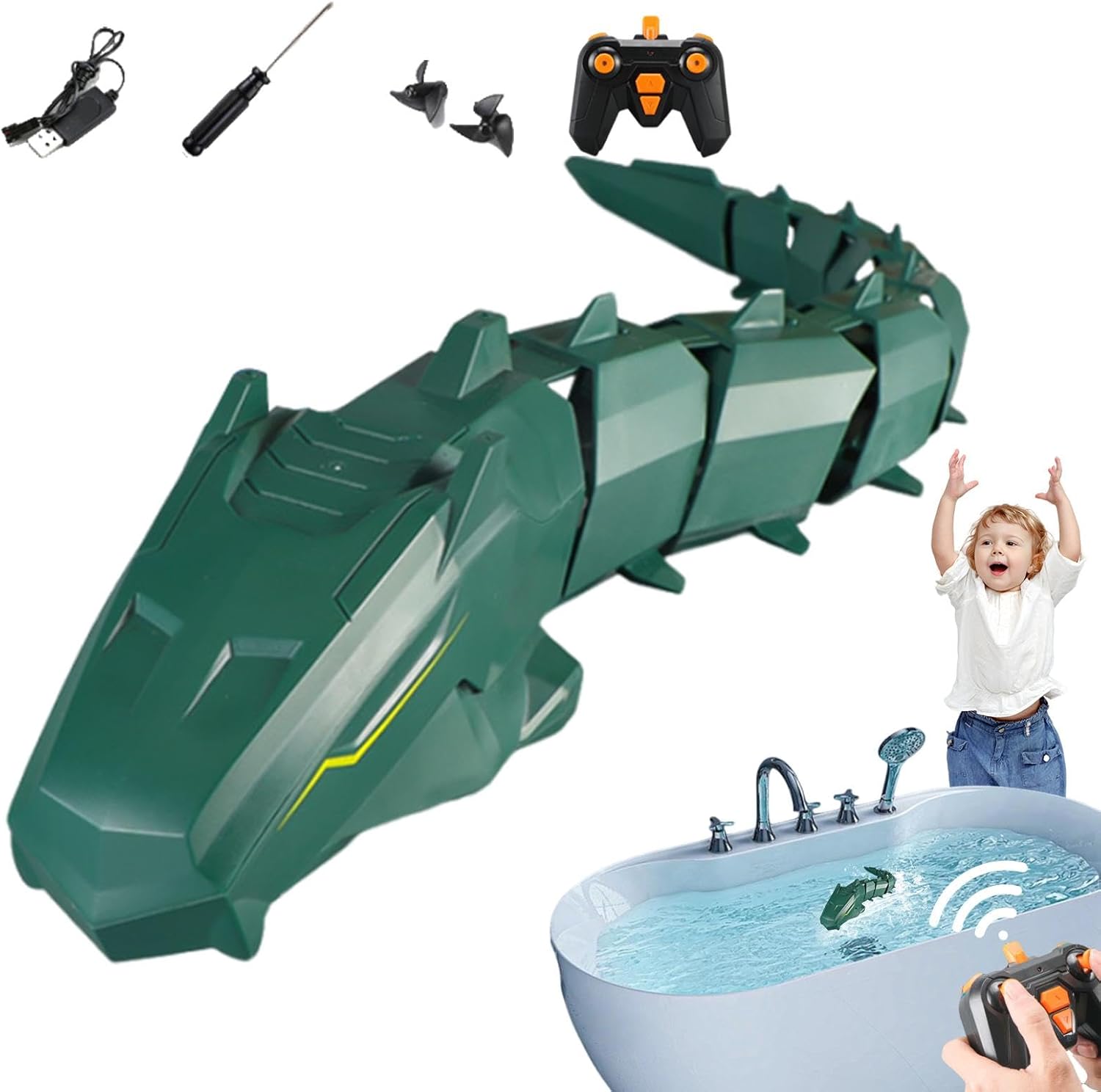 Aspetto unico: il potente motore del nostro giocattolo serpente telecomandato, i doppi paddle e l'articolazione flessibile della coda gli conferiscono la straordinaria capacità di strisciare e scivolare come un vero serpente. I suoi movimenti realistici e l'aspetto unico affascineranno sia i giovani che i vecchi appassionati di , rendendolo perfetto per tutte le occasioni. Controllo rivoluzionato: migliora il tuo gioco con i con il nostro telecomando wireless da 2,4 Ghz, perfetto per più giocatori con capacità più ampie e potenti. Goditi un divertimento senza interruzioni con la nostra tecnologia anti-interferenza che copre un raggio di 30 metri. Controllo senza sforzo: affina le tue abilità con la navigazione continua da sinistra a destra, l'incredibile guida a doppia e le manovre multidirezionali. Colpisci il bersaglio con le regolazioni della velocità e rilascia oscillazioni in avanti dinamiche e a piena potenza. Regalo sorprendente: coinvolgi bambini, adolescenti e adulti con questo giocattolo serpente telecomandato, un regalo pratico che offre ore di interazioni divertenti e migliora la coordinazione occhio-mano. Ampia gamma di utilizzo: immergiti nell'emozione del nostro giocattolo serpente telecomandato, versatile sia per il divertimento indoor che outdoor. Un'aggiunta emozionante alla tua collezione di giochi da piscina, perfetta per la piscina o il bagno, con più possibilità di intrattenimento.