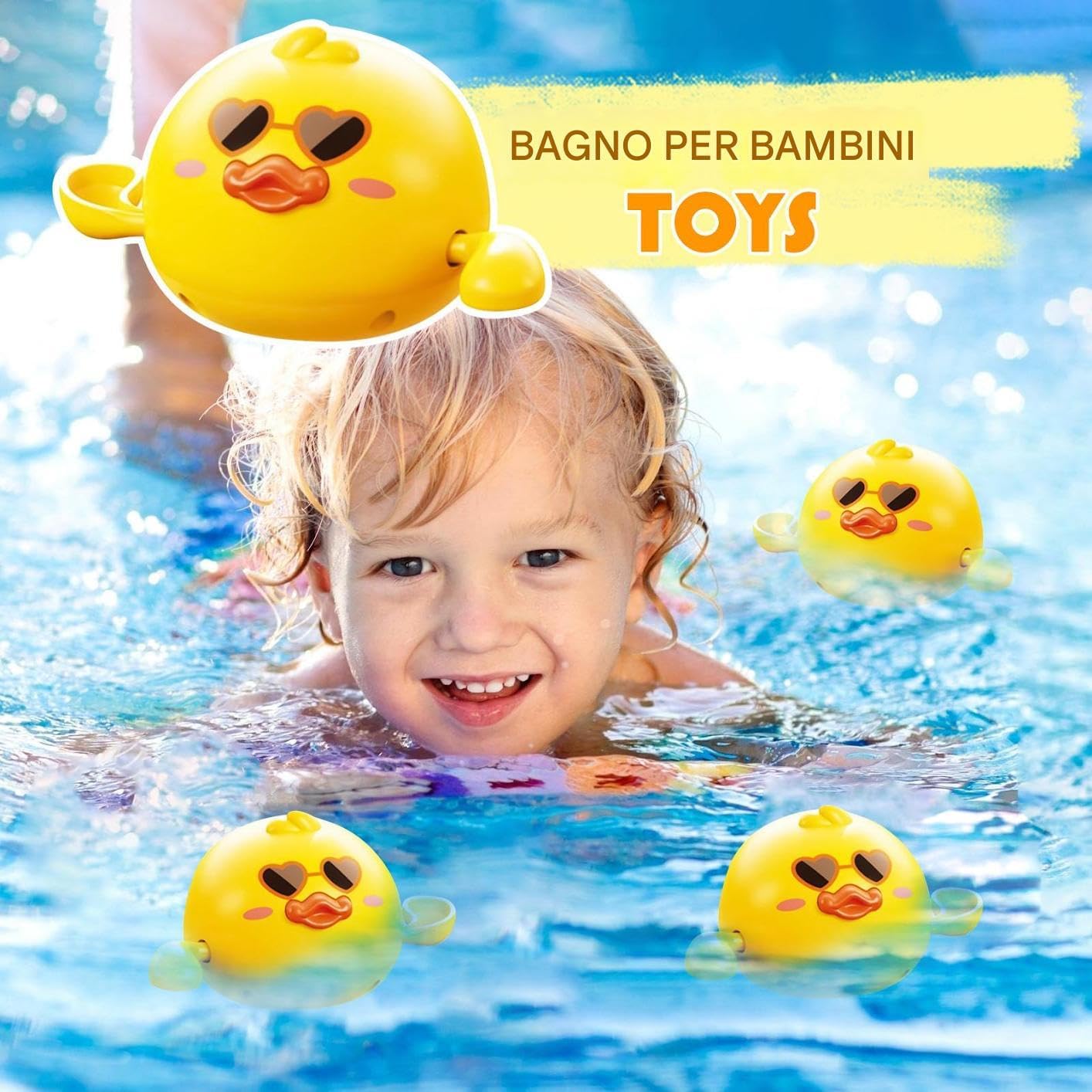Gestione Igienica Comoda: Design anti-sporco senza giunture semplifica la sanificazione ad acqua mantenendo i giocattoli da bagno perfettamente puliti senza stress Materiale Sicuro: Realizzati in ABS, questi giocattoli da bagno mantengono una superficie liscia, resistono a deformazioni e , garantendo un ambiente sicuro per il divertimento durante il bagnetto del bambino Design Giocoso per Bagnetto: piacevole con occhiali da sole aggiunge divertimento al bagno, catturando l'attenzione del bambino con design fun che migliora la routine naturale Movimento Dinamico: Il meccanismo a carica manuale crea un nuoto autonomo, coinvolge attivamente i bambini nel bagno sviluppando naturalmente la coordinazione occhio-mano attraverso il movimento continuo che mantiene l'interesse Usi Versatili: Giochi da bagno progettati per galleggiare facilmente, ideali per vasche e piscine. La struttura leggera favorisce momenti gioiosi e coinvolgenti per i bambini durante il gioco acquatico sicuro.