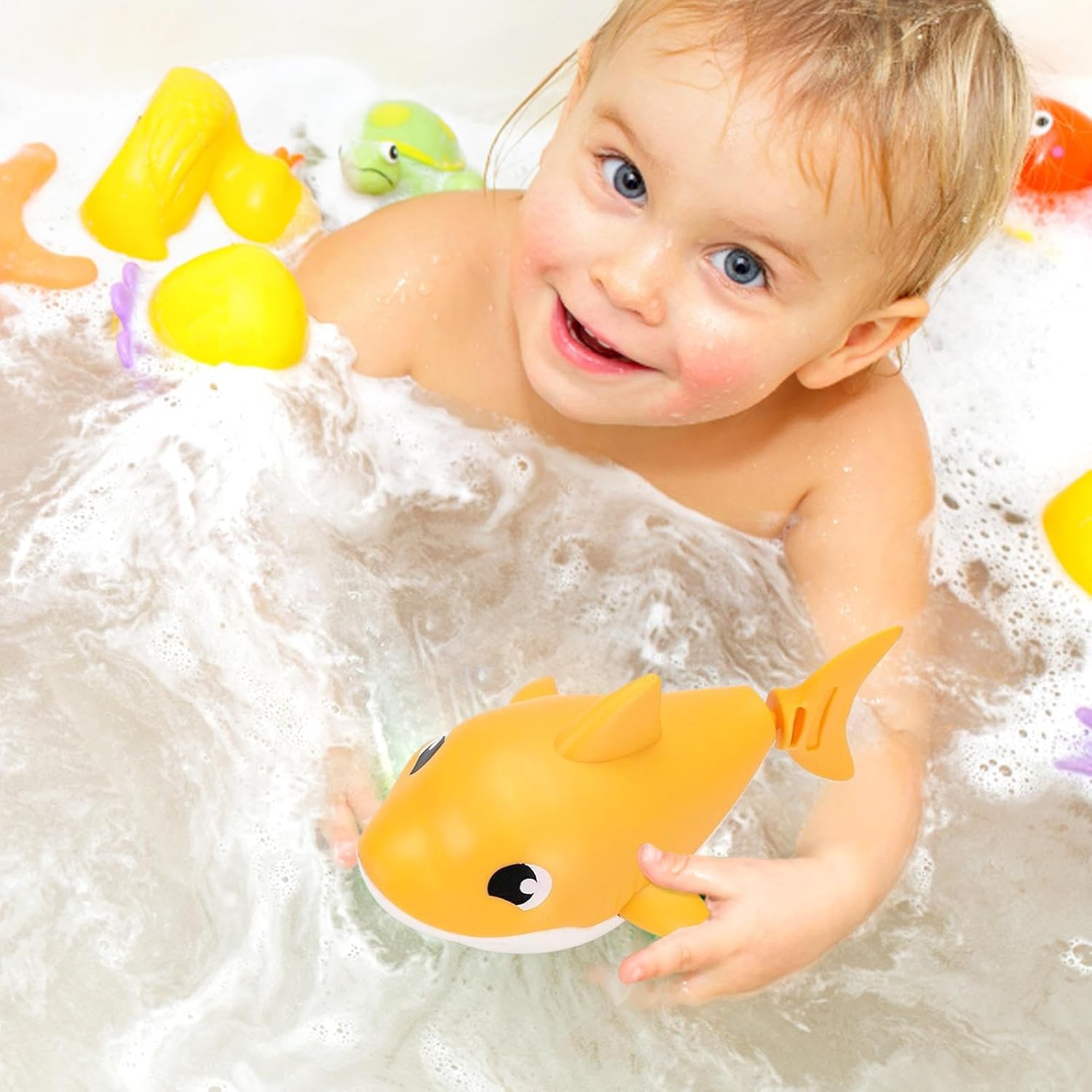 Facile da usare: Ruota delicatamente il meccanismo a carica, posiziona il simpatico squalo in acqua e guardalo da solo. Intrattenimento semplice che rende il bagnetto più divertente per il tuo bambino. Qualità Premium: Realizzato con materiali durevoli atossici resistenti all'acqua. Facile da pulire e asciugare rapidamente mantenendo brillanti i colori dopo ogni utilizzo per una lunga durata nel Design Coinvolgente: La forma amabile di squalo mantiene l'interesse dei bambini durante il bagno, rendendo ogni sessione vivace e allegra. I piccoli si immergono completamente nel divertimento delle attività di lavaggio grazie a questo giocattolo acquatico dall'aspetto invitante. Resistenza Comprovata: Fabbricati in ABS di alta qualità, i giocattoli da bagno assicurano performance e robusta, progettati per resistere a un uso prolungato mantenendo qualità costante attraverso bagnetti Diffuso utilizzo:Porta gioia in piscina doccia e momenti della vasca assicurando applicazioni multiple per migliorare il di gioco dei bambini in diversi contesti acquatici domestici con giochi da bagno interattivi per esperienze idriche piacevoli e coinvolgenti