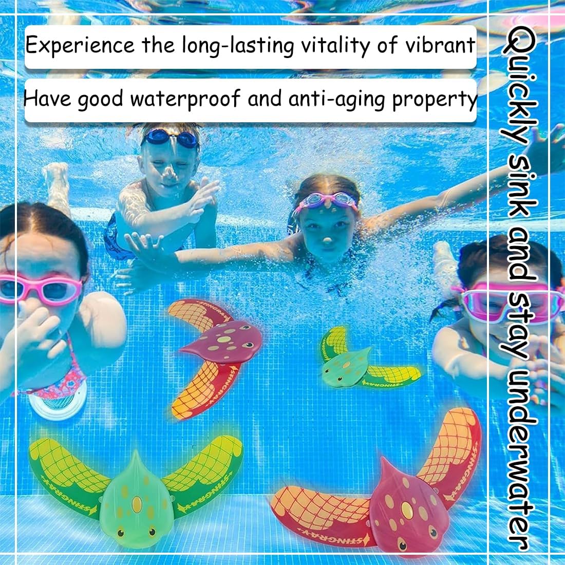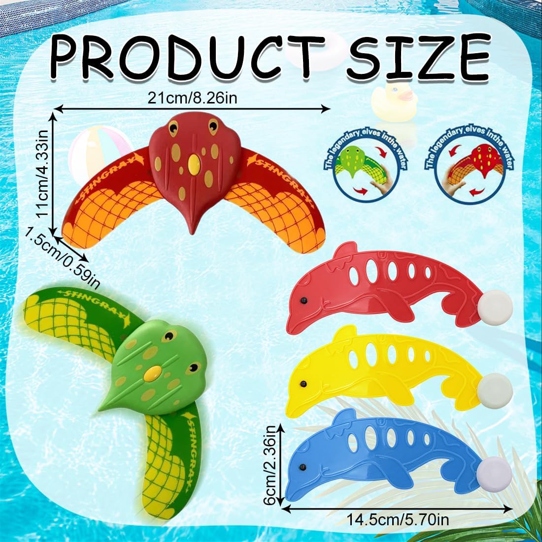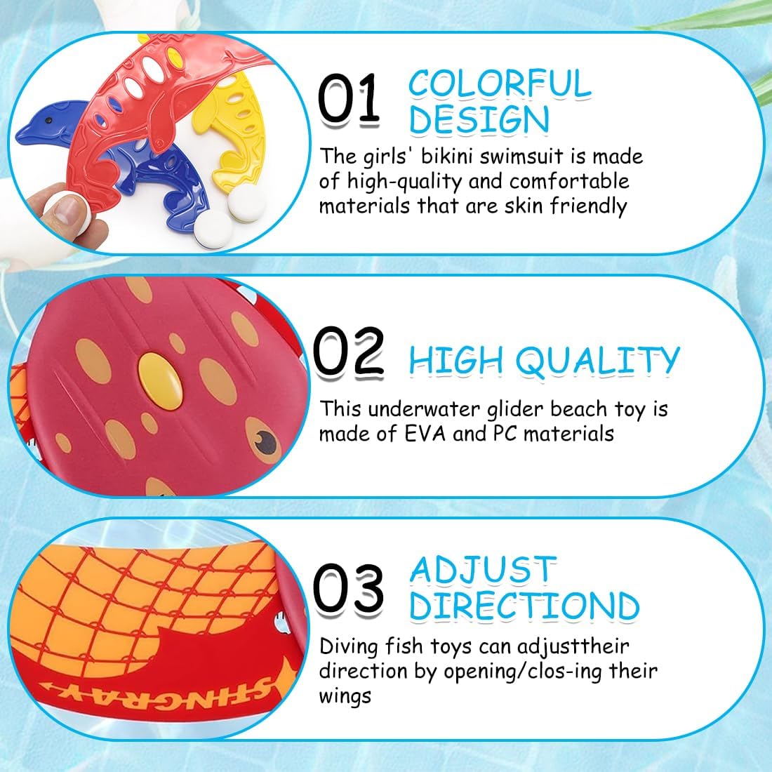 【Design fluidodinamico】 Questo giocattolo subacqueo per bambini utilizza un design fluidodinamico. Non richiede batterie. Immergilo in acqua e lascia andare le mani. Si muove in avanti e nuota da solo! Più lo immergi, più scivola. Migliora le abilità subacquee: i giocattoli subacquei da piscina sono ottimi per esercitarsi sott'acqua. Questi splendidi diamanti e pietre preziose brillano sott'acqua, ispirando l'entusiasmo dei bambini per la caccia al tesoro e per l'allenamento delle loro abilità di nuoto e immersione. 【Direzione regolabile】 2 giocattoli acquatici a forma di manta possono cambiare modalità accendendoli/spegnendoli e ruotandoli a sinistra/destra! I bambini possono esplorare i principi della meccanica dei fluidi, regolare la postura del giocattolo, riflettere mentre giocano, migliorare la propria espressività subacquea e incoraggiare il pensiero innovativo. Gli altri 3 pezzi sono boe a forma di pesce e delfino. 【Promuove la forma fisica dei bambini】 Inseguire i giocattoli subacquei in acqua può aiutare a sviluppare le capacità natatorie e la forma fisica dei bambini, migliorare la forma fisica dei bambini, promuovere la loro adattabilità all'acqua e la consapevolezza della sicurezza, e aumentare il divertimento e la sicurezza delle attività acquatiche. 【Educativo e divertente】 Giocattolo da piscina perfetto per l'estate, una nuova esperienza di interazione genitore-figlio. Questo gioco acquatico sfrutta i principi della galleggiabilità e della pressione dell'acqua, permettendo ai bambini di comprendere i principi della galleggiabilità e della dinamica dei fluidi mentre giocano
