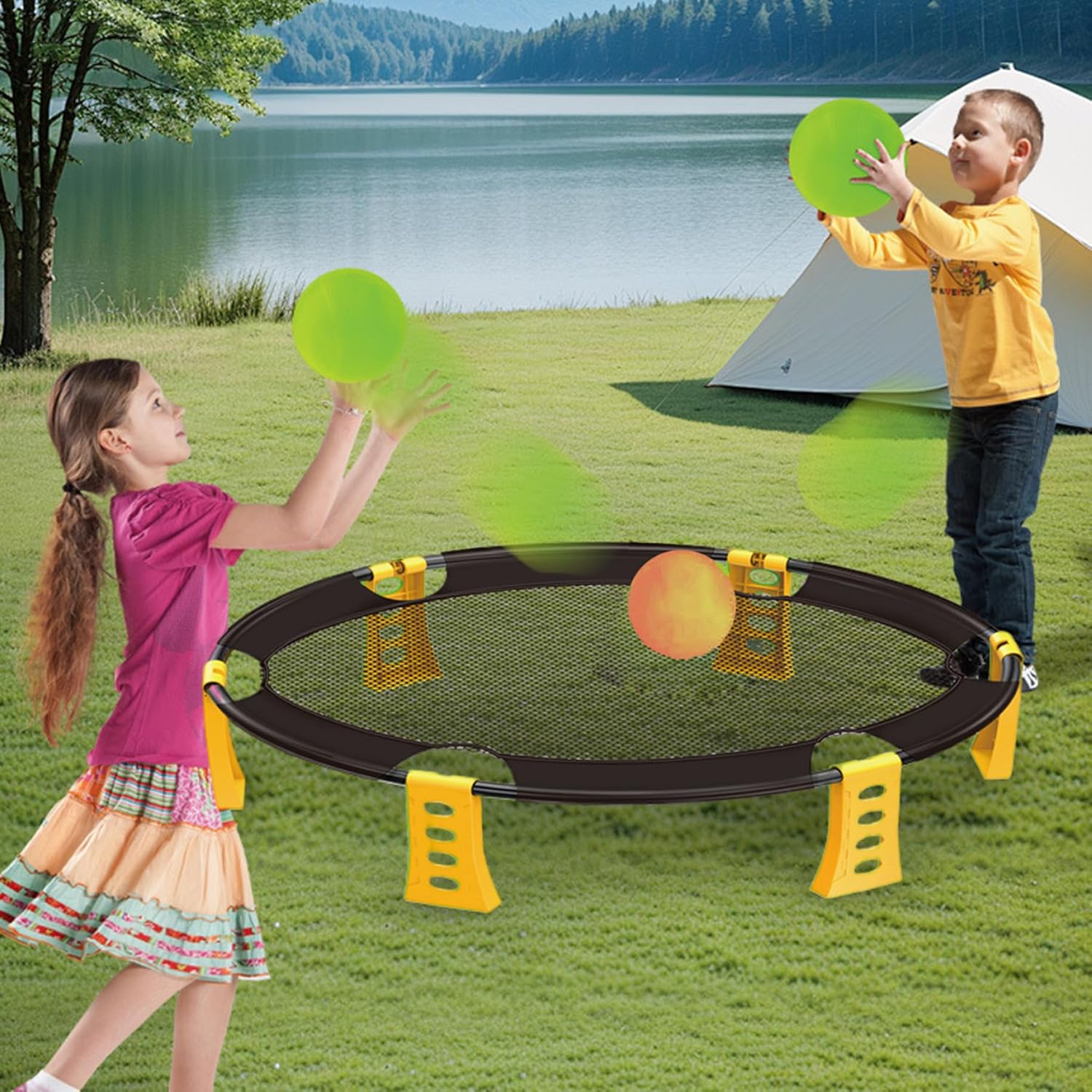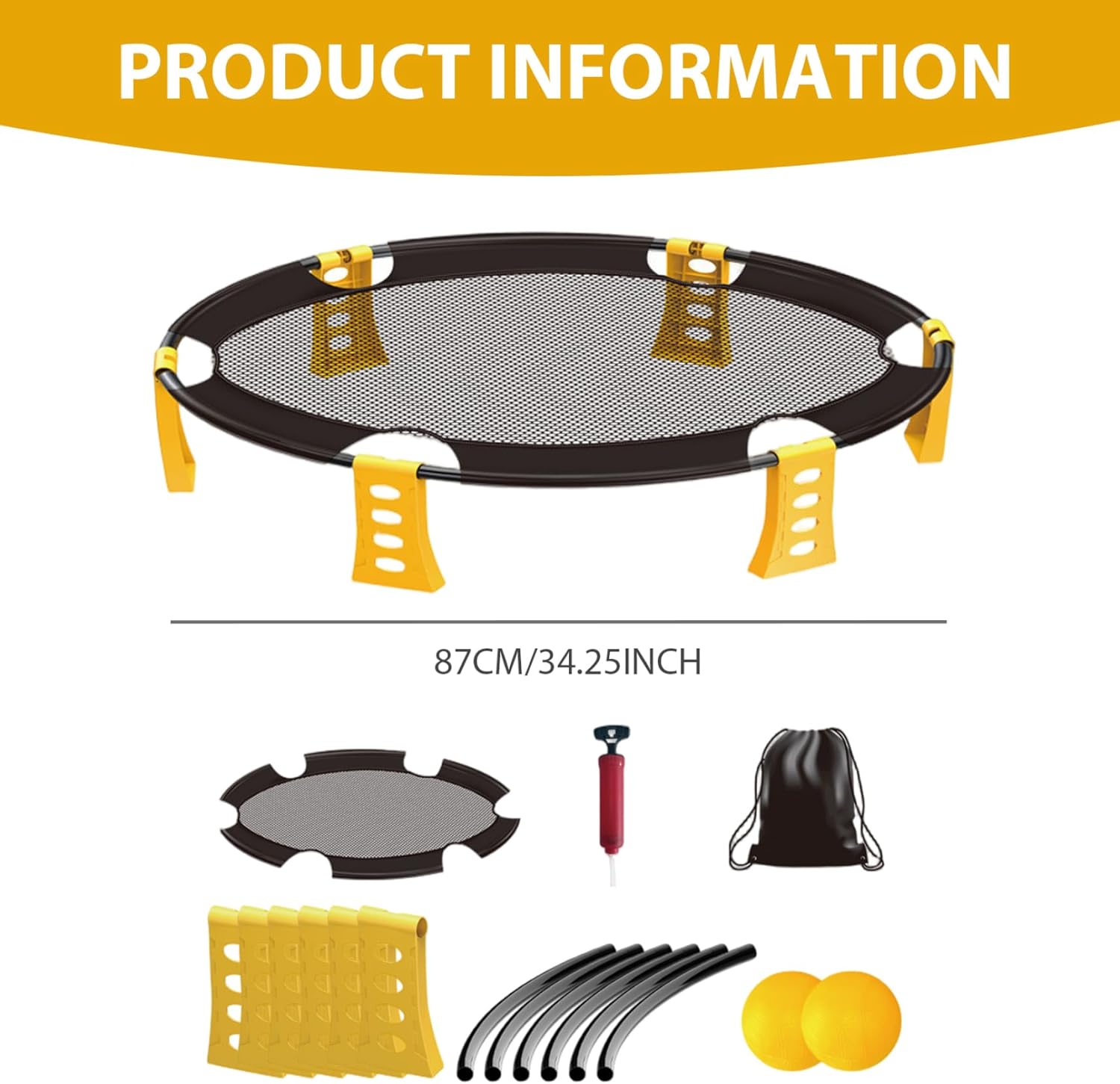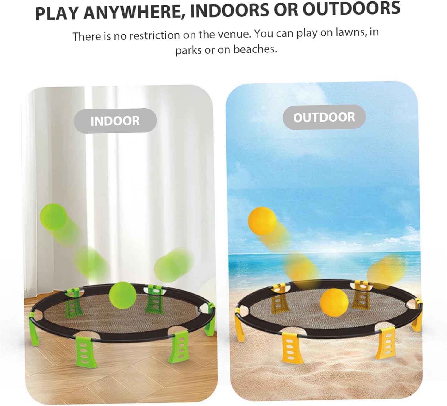 Set completo per giochi da spiaggia: questo kit da gioco per esterni include tutto ciò di cui hai bisogno per una divertente giornata in spiaggia: 2 palloni, una rete robusta, una comoda custodia e una pompa ad..Tutto è imballato per un facile trasporto! Configurazione portatile e semplice: la configurazione è un gioco da ragazzi!.La rete è semplice da montare e smontare, mentre la borsa inclusa facilita il trasporto e lo stoccaggio di tutta la tua attrezzatura..È il gioco ideale per il divertimento in movimento. Materiali stabili: realizzati con materiali plastici, la rete e le palline sono realizzate per resistere a condizioni esterne difficili..Il design robusto garantisce che dureranno per innumerevoli round di gioco. Divertimento attivo e coinvolgente: incoraggia l'attività fisica e il lavoro di squadra con questo emozionante gioco all'aperto..Ideale per gite in spiaggia, campeggio o riunioni di famiglia, promuove il gioco attivo e la sana competizione. Perfetto per tutte le età: che tu sia un bambino o un adulto, questo gioco è progettato per il divertimento di tutti..È un'attività fantastica per far divertire le famiglie insieme all'aria aperta, rendendola perfetta per la spiaggia, il cortile o il parco.