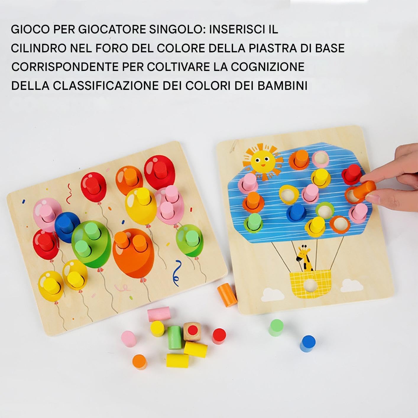 Potenziatore Cromatico: Migliora significativamente la percezione dei colori con molteplici tonalità, contribuendo sviluppo sensoriale visivo del bambino Materiale Durevole: Legno selezionato per lunga durata e totale sicurezza, consentendo un divertimento continuo senza preoccupazioni Rafforzare i legami: Grazie ai giocattoli educativi per ordinamento colori, l'interazione tra genitori e bambini aumenta, favorendo una comunicazione familiare e consolidando relazioni positive per creare ricordi duraturi Rafforza Competenze: Stimola lo sviluppo a flessibilità e dita, e capacità motorie fini, 'attitudine alla risoluzione problemi, a coordinazione occhio-mano e a concentrazione persistente attraverso attività di classificazione cromatica interattiva Gioia Festiva: Rallegra le festività e i momenti speciali Pasqua, Capodanno, Giornata dei Bambini, compleanni e Natale con i nostri giocattoli per l'ordinamento dei colori, progettati per intrattenere e insegnare in modo intuitivo.