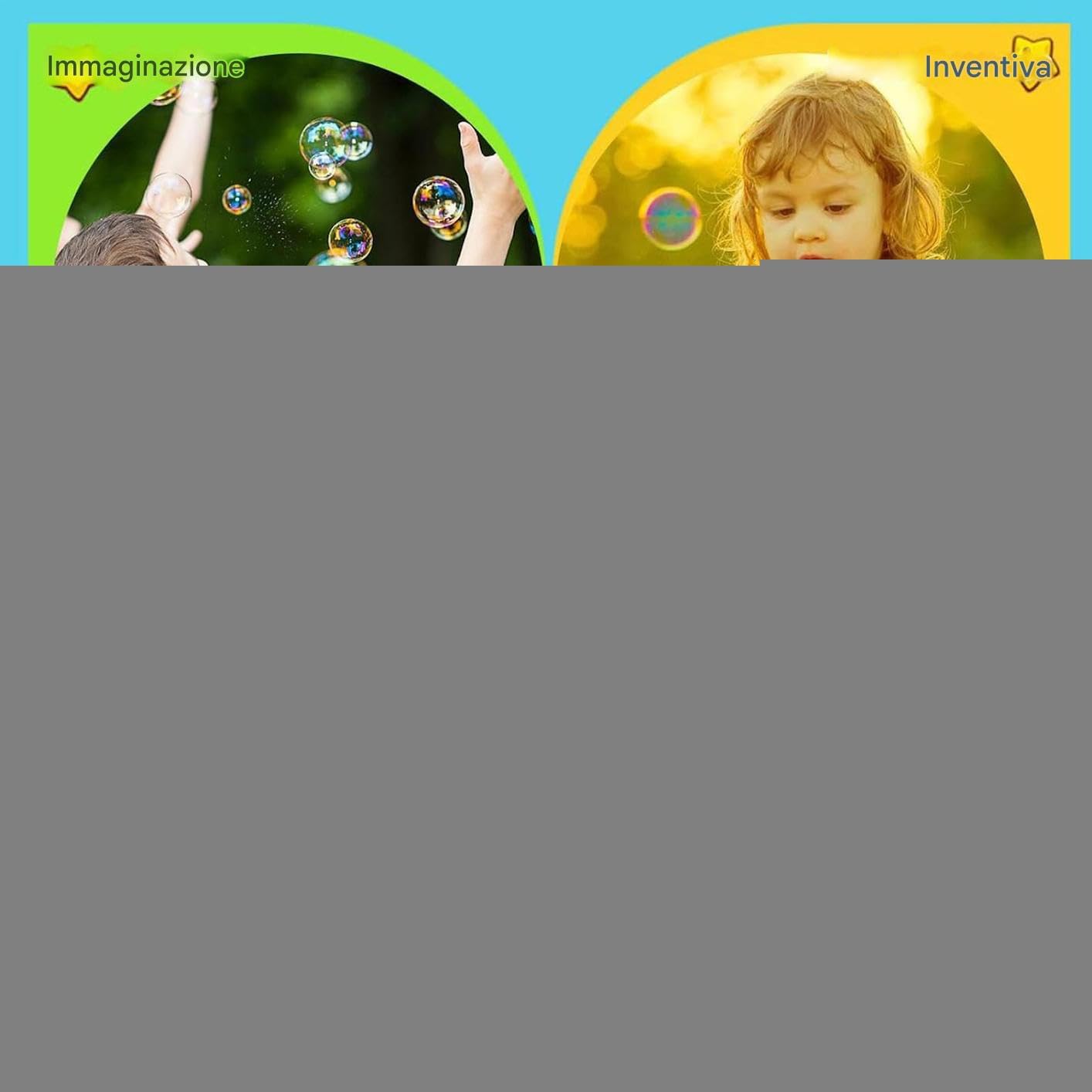 Utilizzo semplice: Grazie al meccanismo immediato proietta bolle fino a circa 5 metri, garantendo divertimento prolungato che arricchisce riunioni familiari e giochi esterni in modo spontaneo e coinvolgente Condividi la Felicità: Diffondi gioia con il gioco delle bolle, un'idea regalo creativa che aumenta l'intrattenimento e ti aiuta a mostrare attenzione, creando connessioni naturali tra le persone care Leggerezza e Maneggevolezza: Progettato per promuovere la scoperta all'aperto, è leggero e facile da trasportare, per coinvolgere i bambini in attività divertenti a parco, spiaggia e cortile, favorendo curiosità e movimento fisico Design Versatile: Supporta lo sviluppo naturale delle abilità sociali nei bambini dai 3 anni in su, incoraggia la creatività e migliora la coordinazione occhio-mano durante attività interattive e divertenti allenamenti con le bolle di sapone Intrattenimento Assicurato: Porta allegria creando un ambiente di gioco gioioso con bolle colorate robuste; includendo 10 flaconcini di liquido, questo articolo potenzia il divertimento e supporta momenti ricreativi per bambini attraverso il gioco interattivo